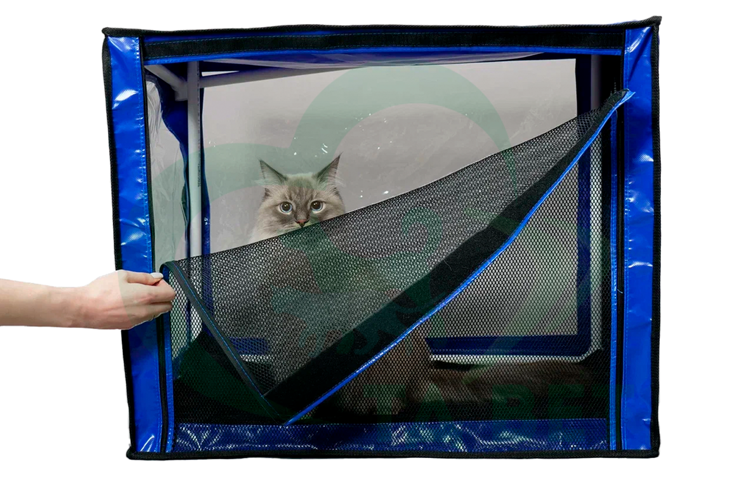 Две боковые стороны палатки выполнены из прозрачной пленки, благодаря этому вы сможете представить своих питомцев на выставке в максимально выгодном свете.
