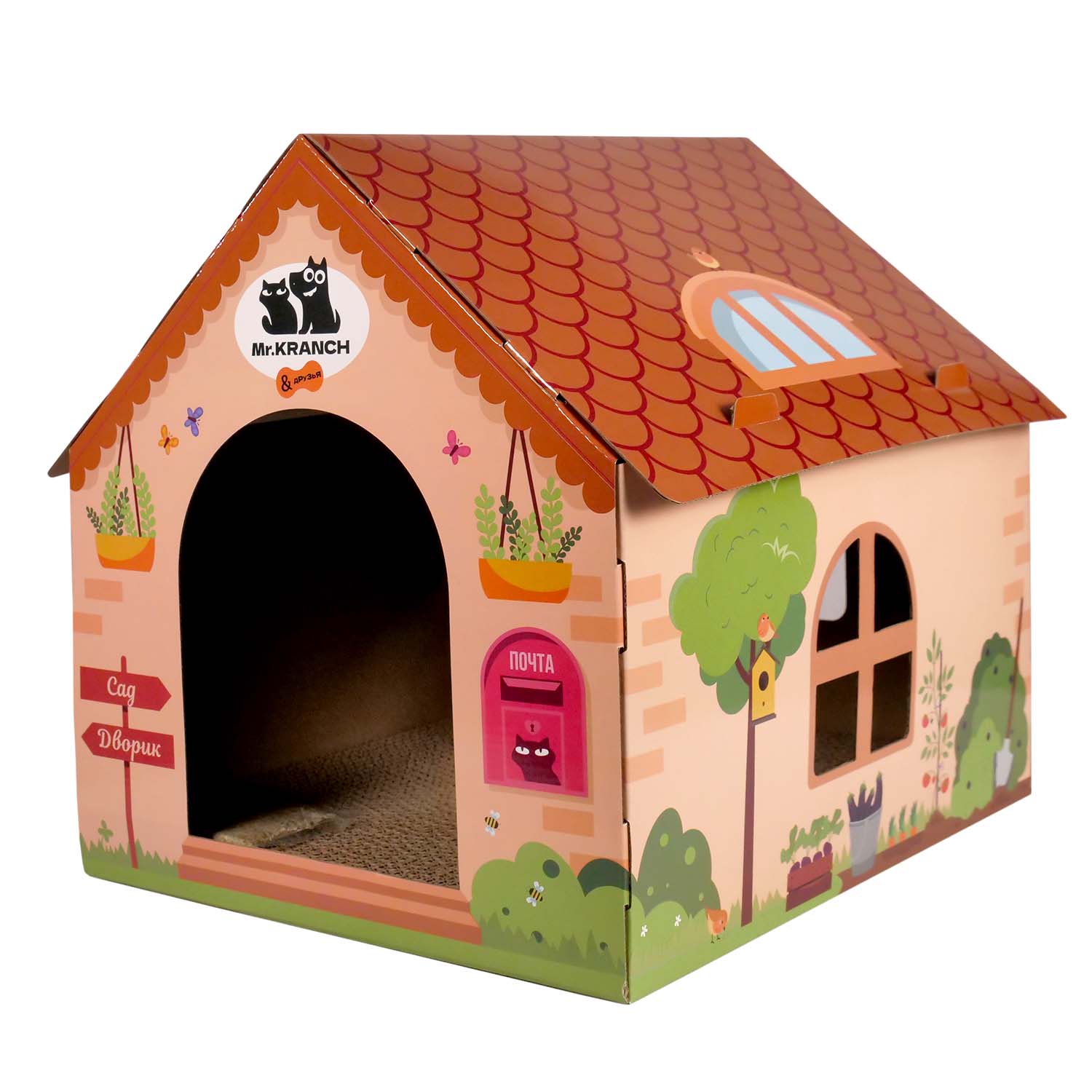 Когтеточка-домик Mr.Kranch для кошек 41.5х39.4х38.5 см из картона с кошачьей мятой бежевая