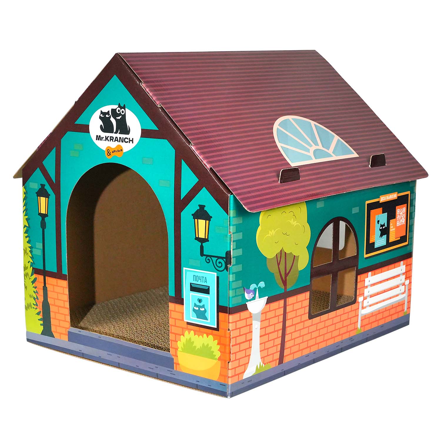 Когтеточка-домик Mr.Kranch для кошек 41.5х39.4х38.5 см из картона с кошачьей мятой зелёная