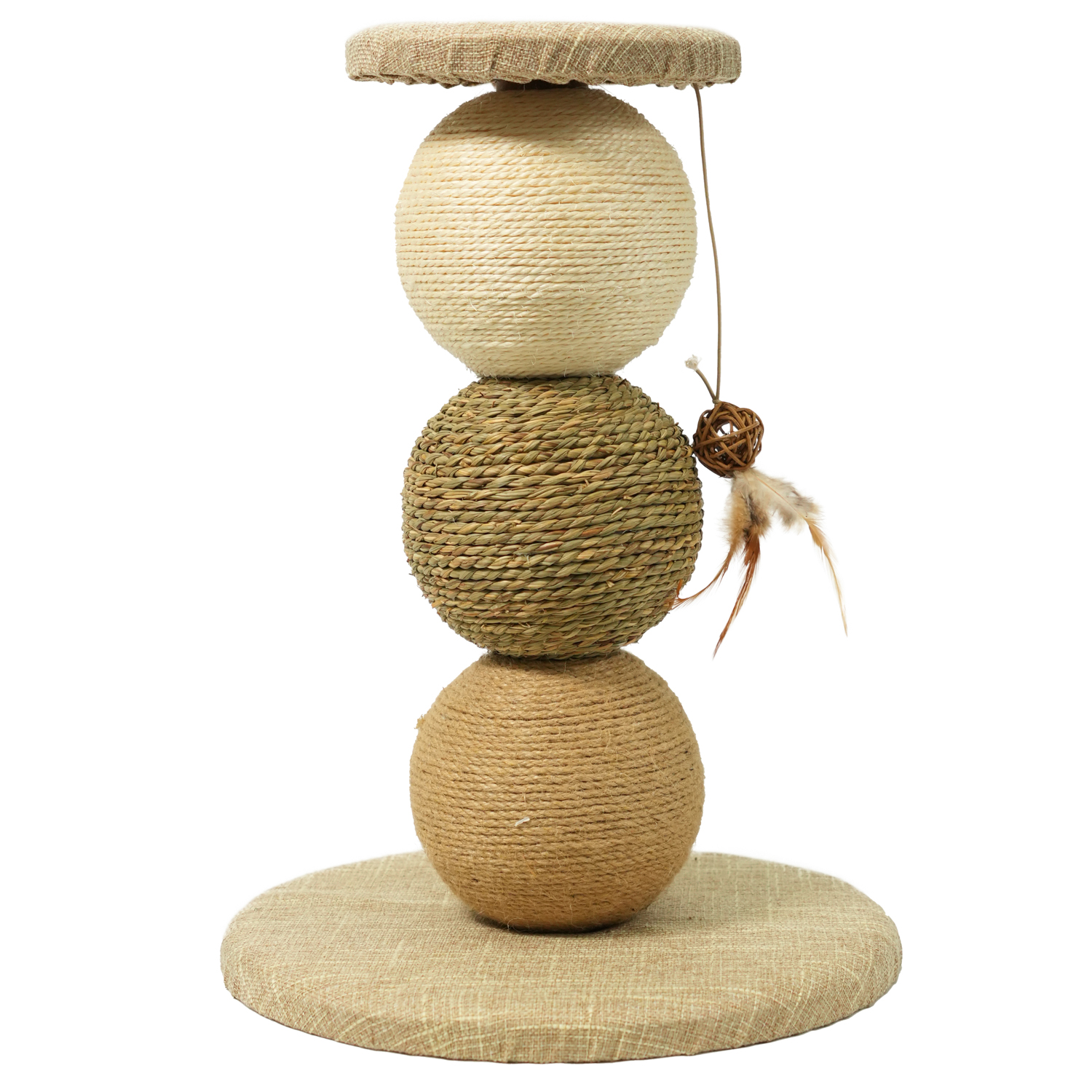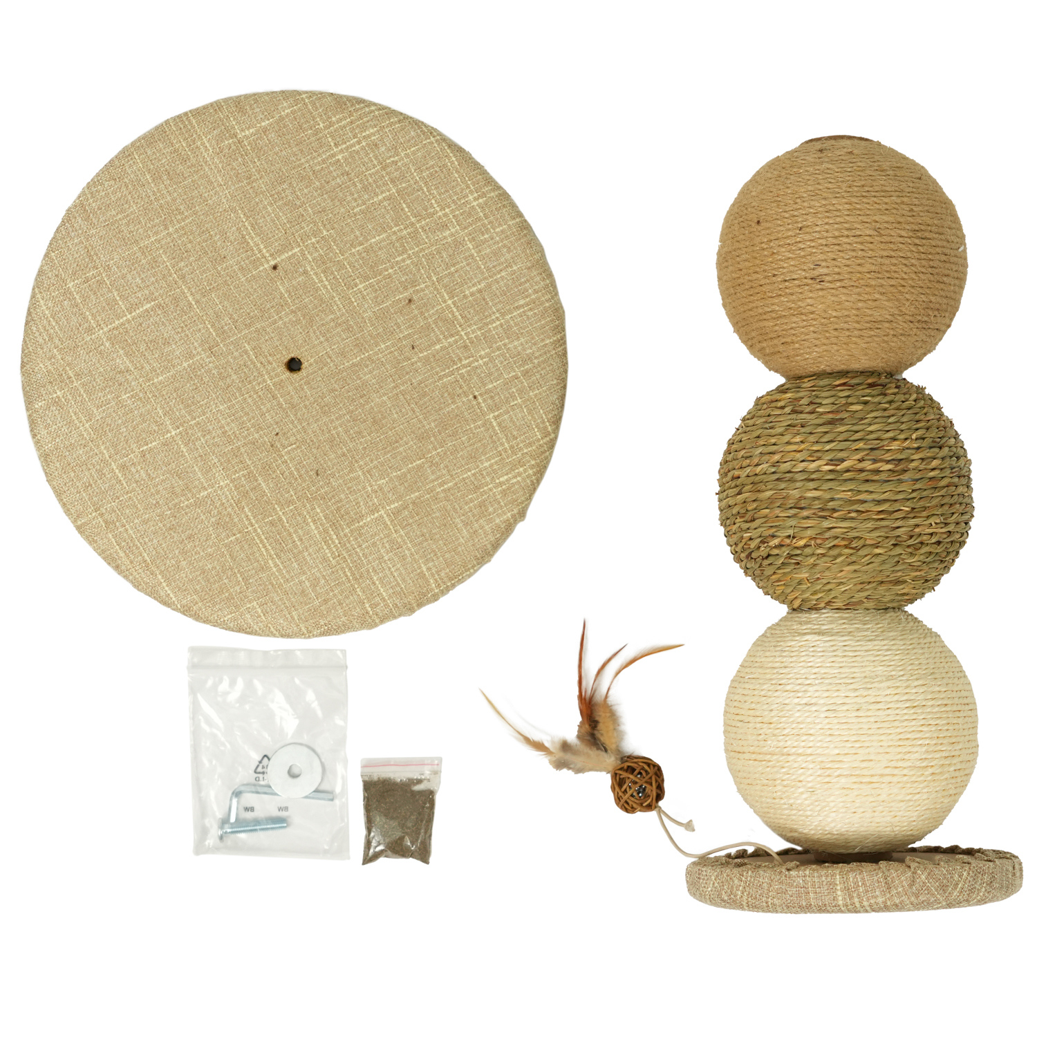 Пирамида из трех шаров - это увлекательное испытание для вашей кошки. Питомец может прыгать на них и пытаться забраться на верхнюю платформу. Это поможет вашей кошке поддерживать здоровье когтей и выплеснуть энергию.