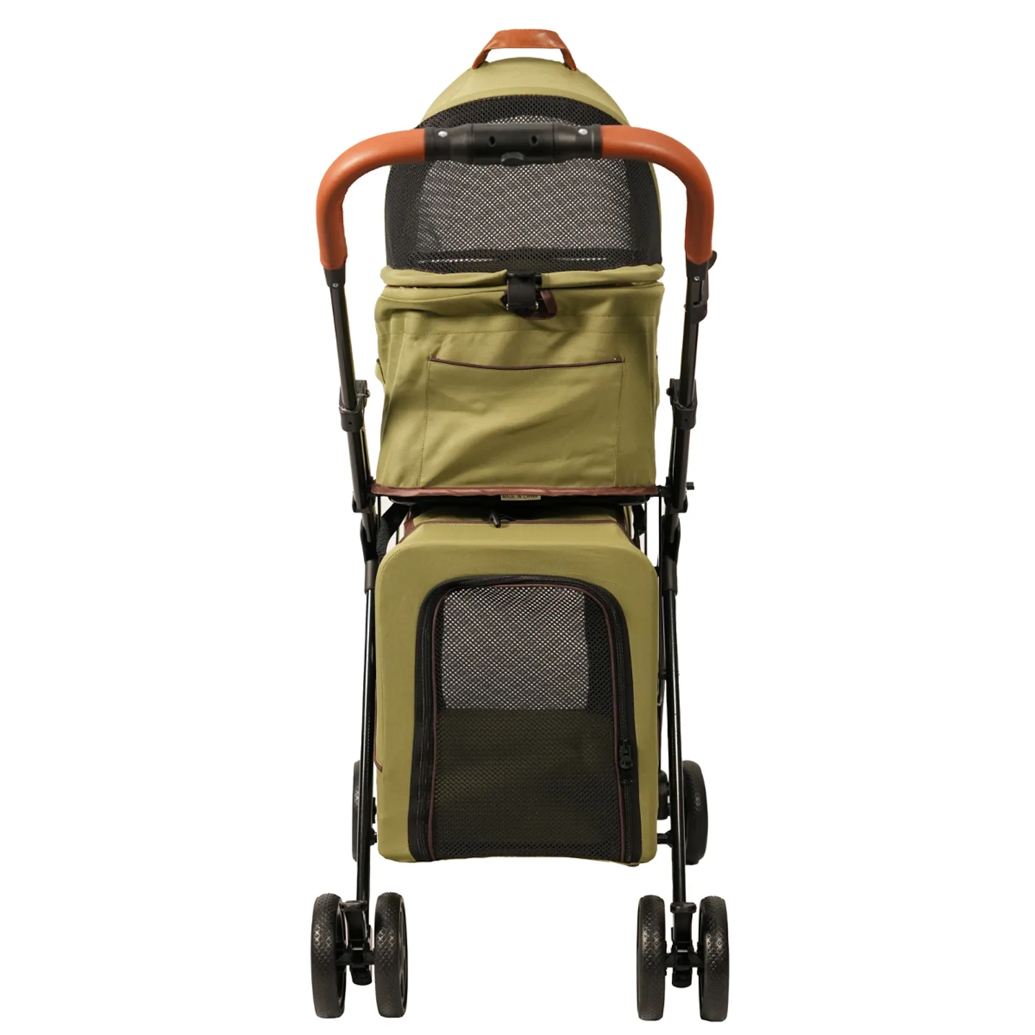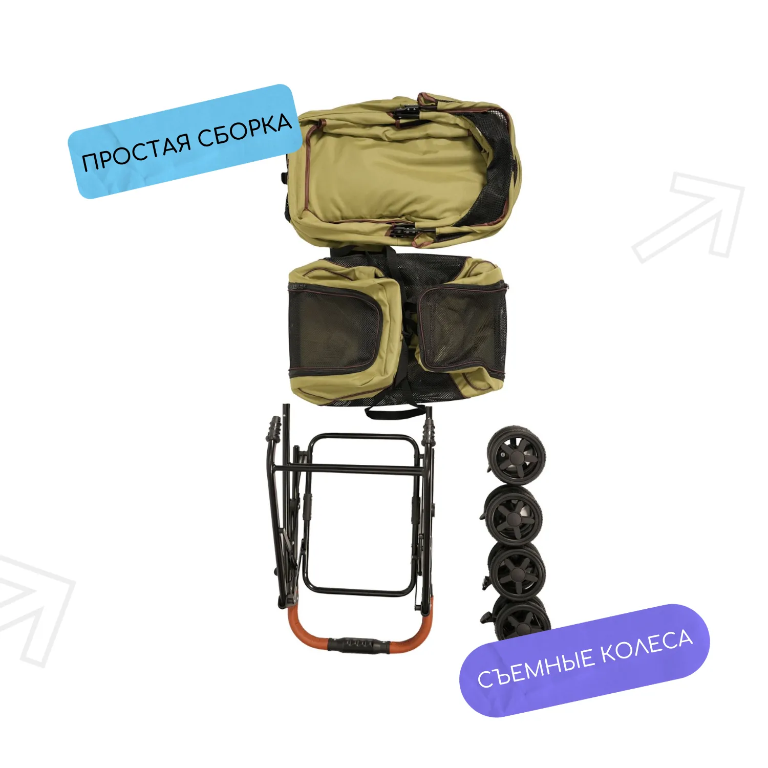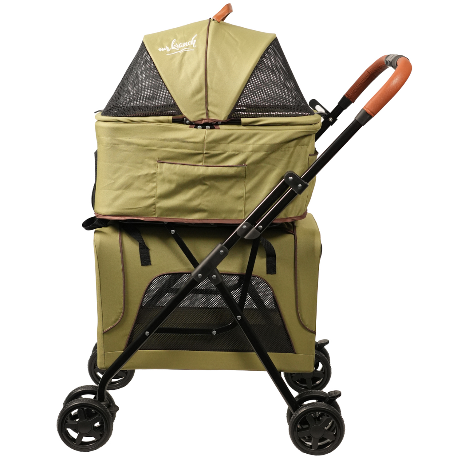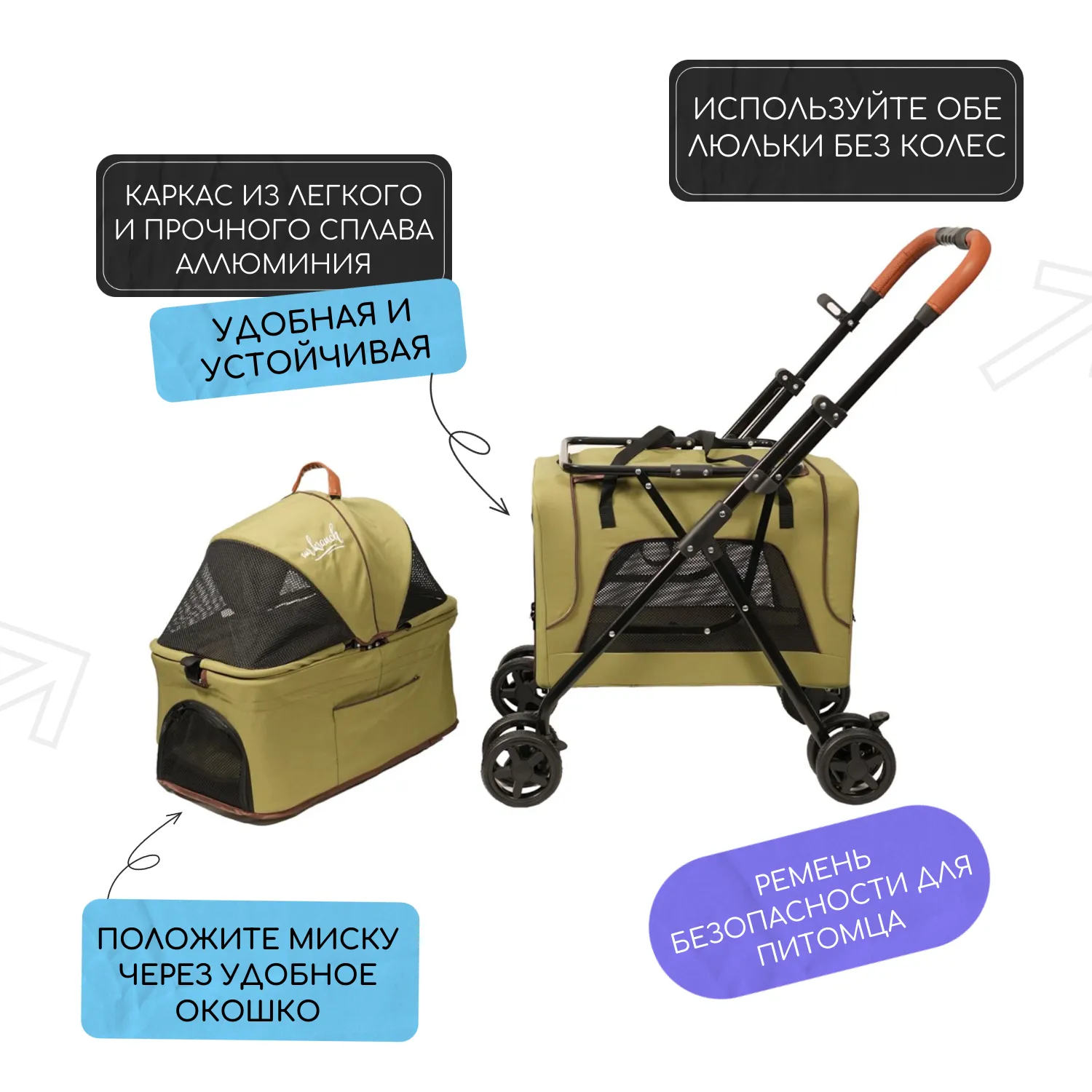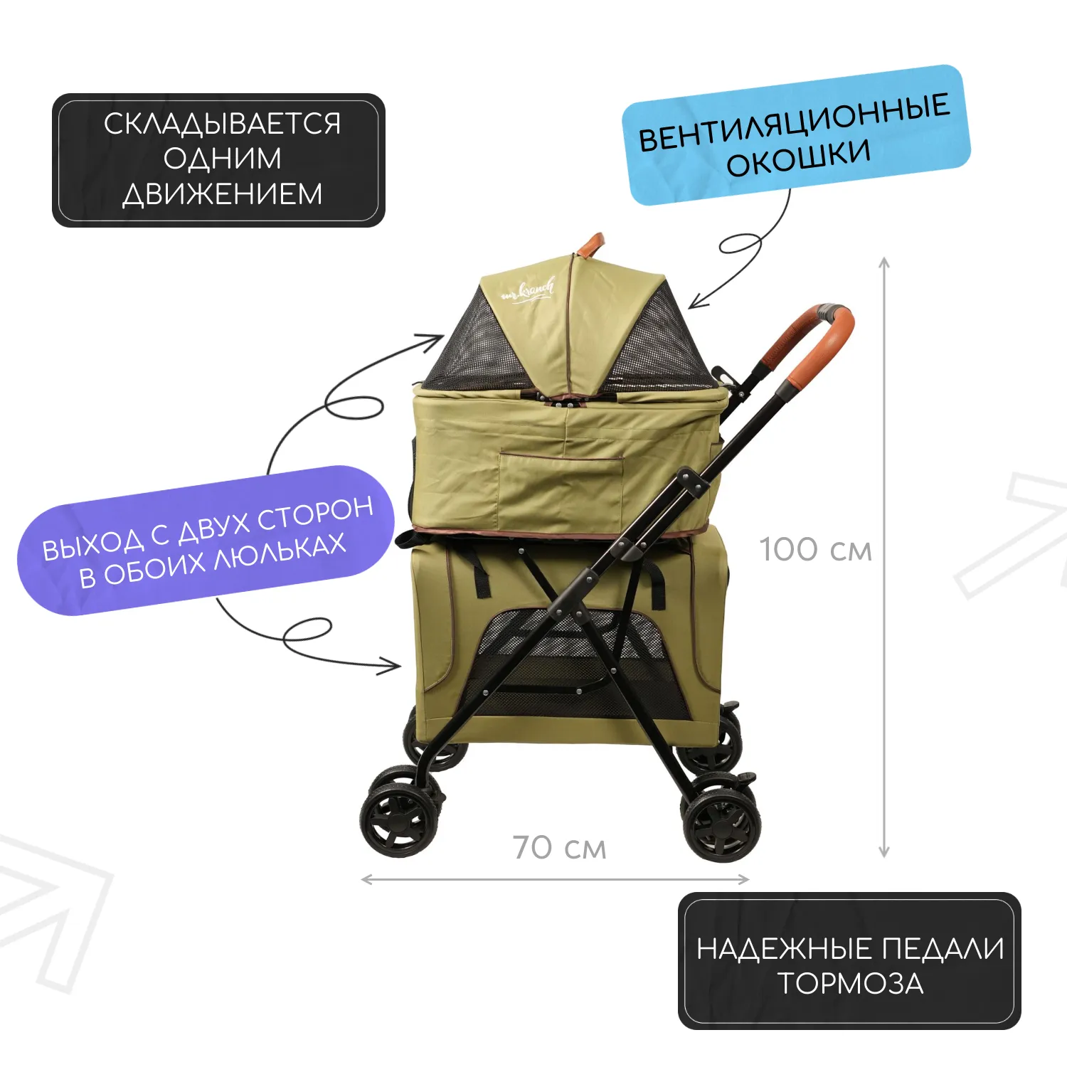 Коляска прогулочная Mr.Kranch для собак и кошек двойная (макс. нагрузка 10+10 кг) оливковая