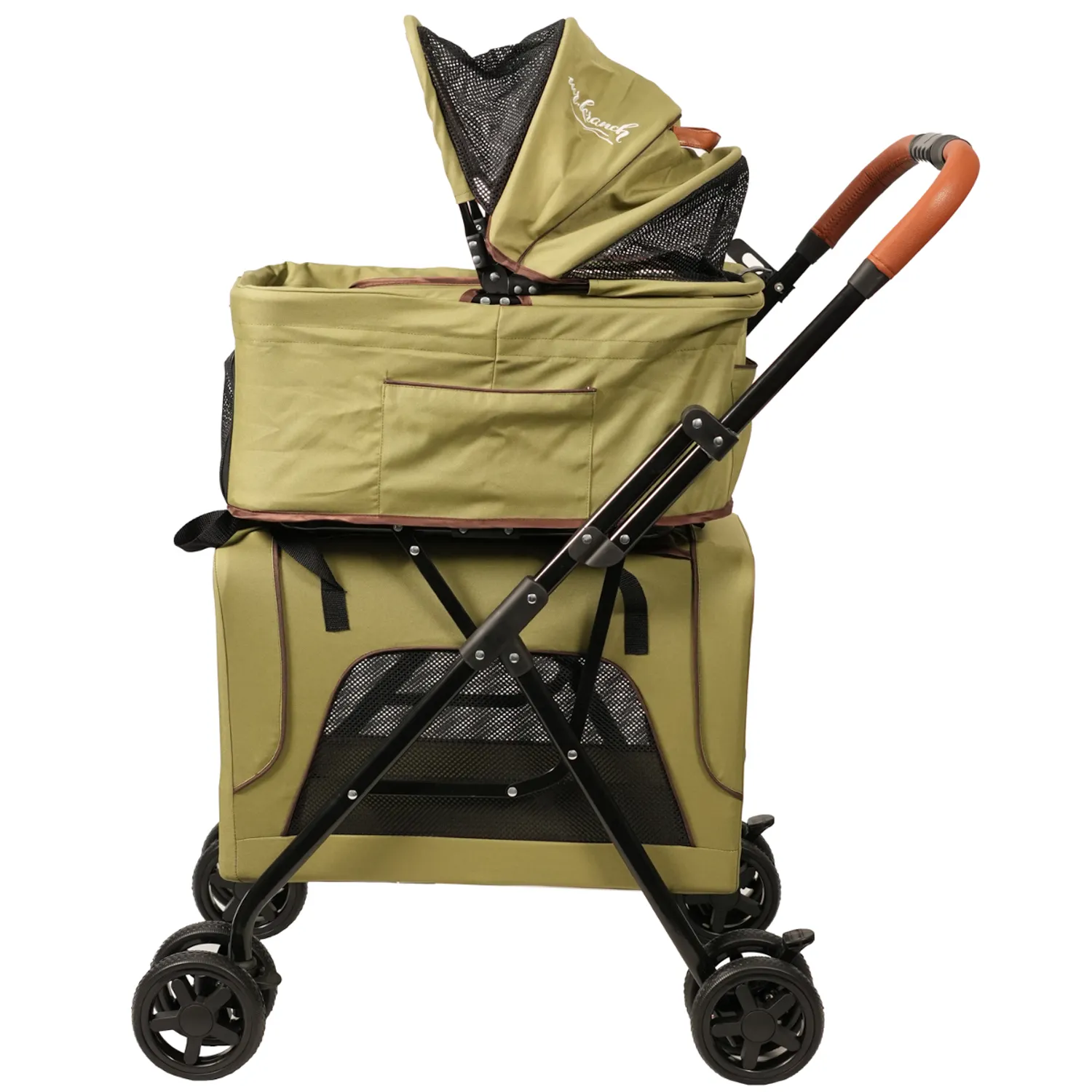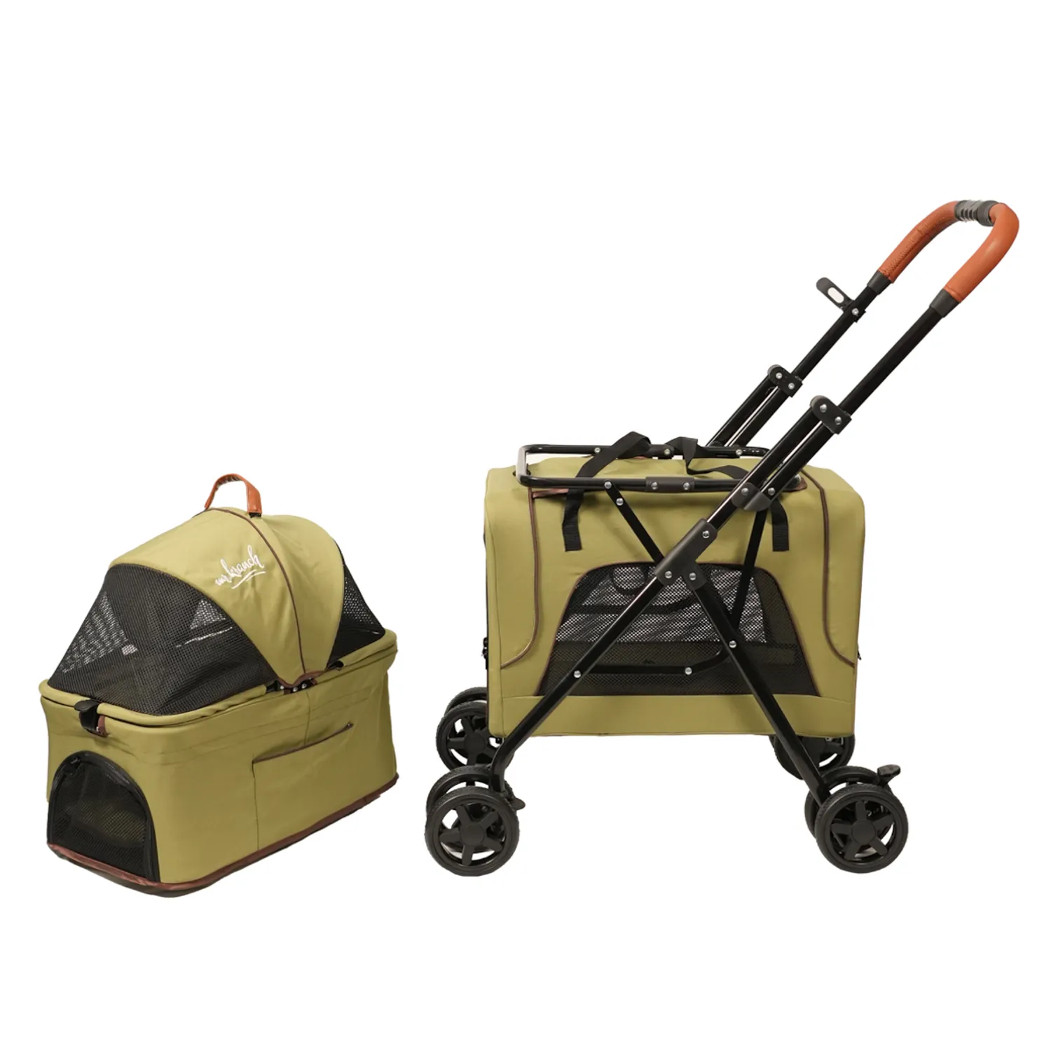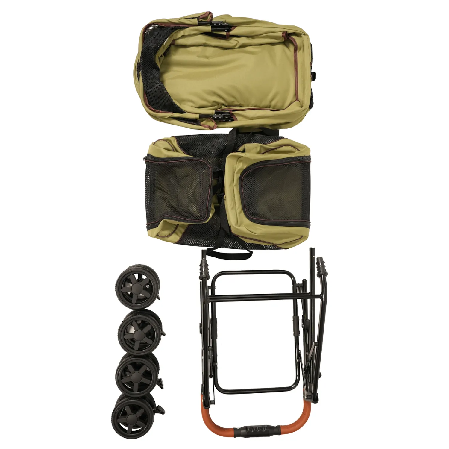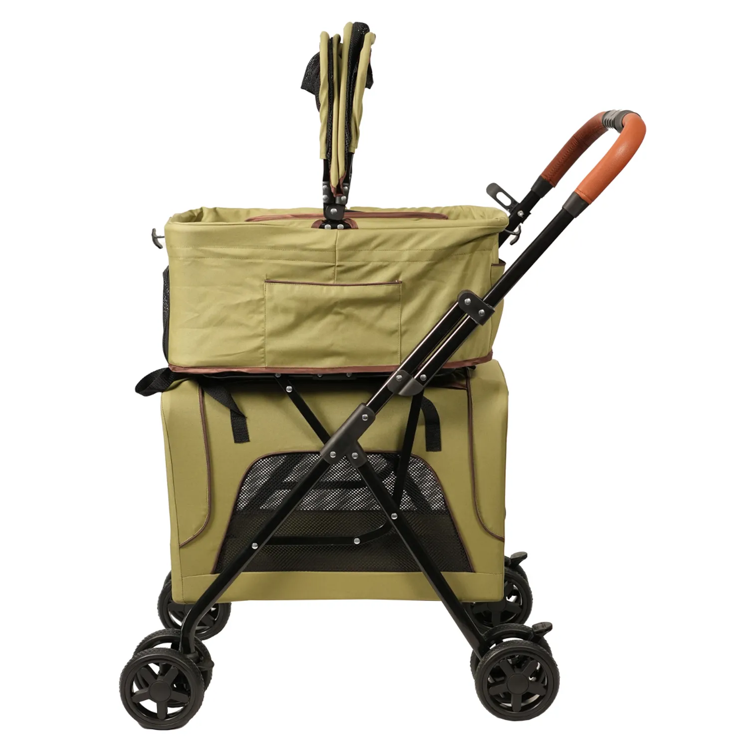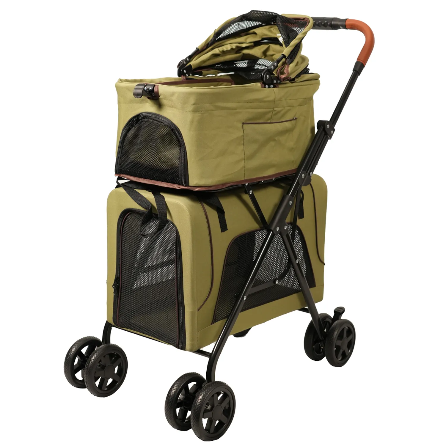 Коляска прогулочная Mr.Kranch для собак и кошек двойная (макс. нагрузка 10+10 кг) оливковая