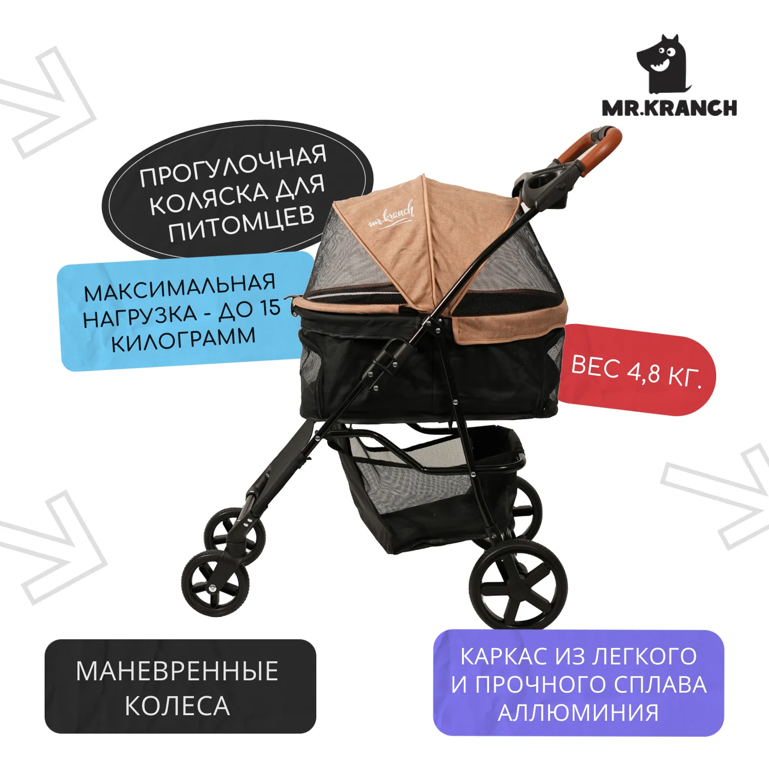 Коляска прогулочная Mr.Kranch для собак и кошек (макс. нагрузка 15 кг) бежевая