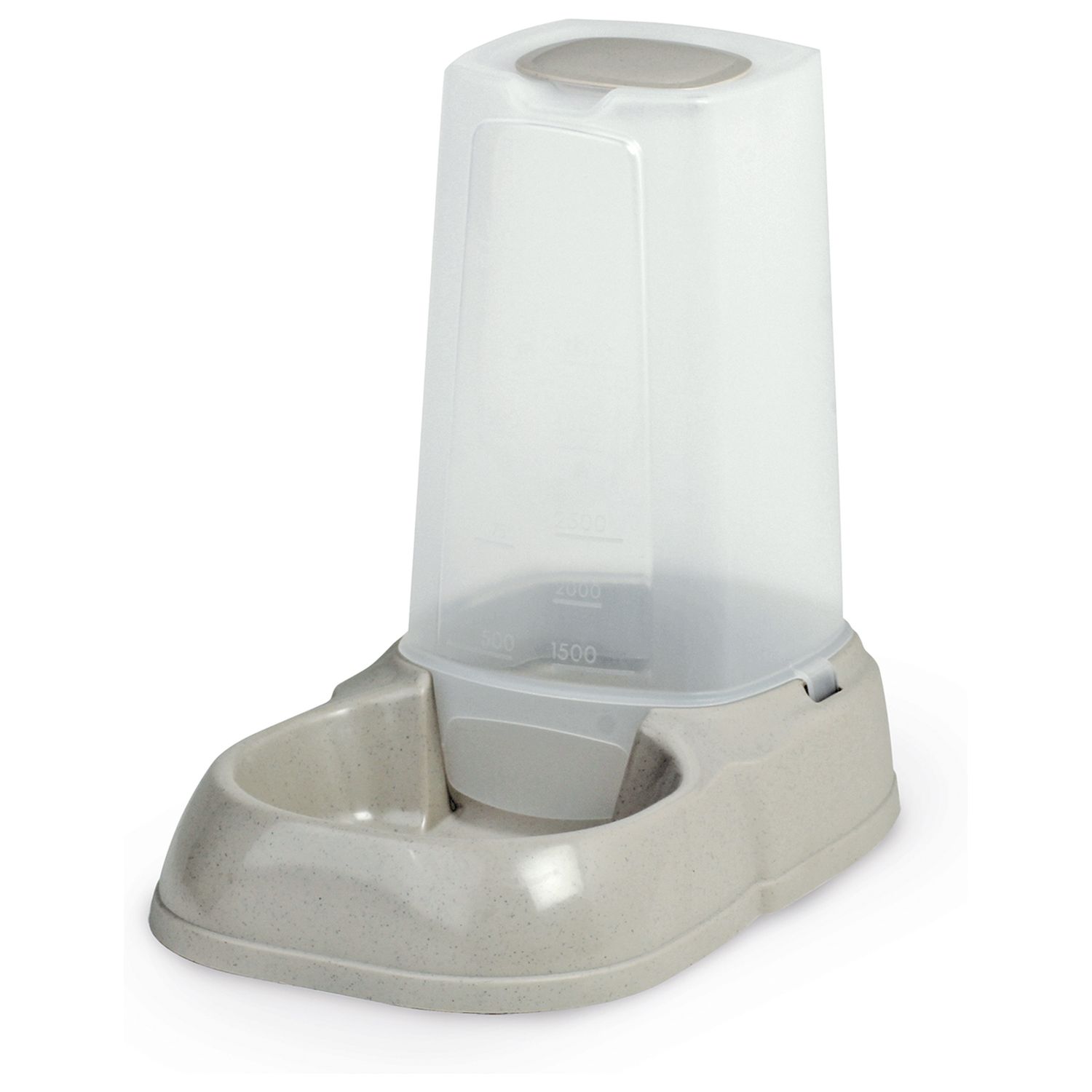 Удобный вертикальный сосуд отвечает за своевременную подачу жидкости в миску (под действием атмосферного давления), а высококачественный пластик не впитывает посторонних запахов – все это обеспечивает свежесть и привлекательность воды для животных.