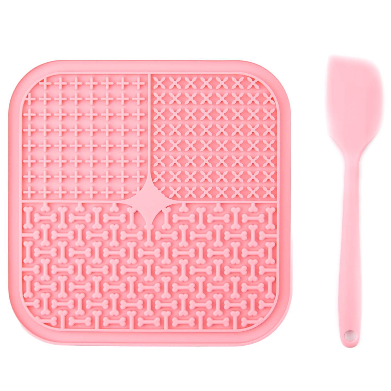 Лизательный коврик Mr.Kranch для медленного поедания силиконовый 20*20 см розовая с лопаткой