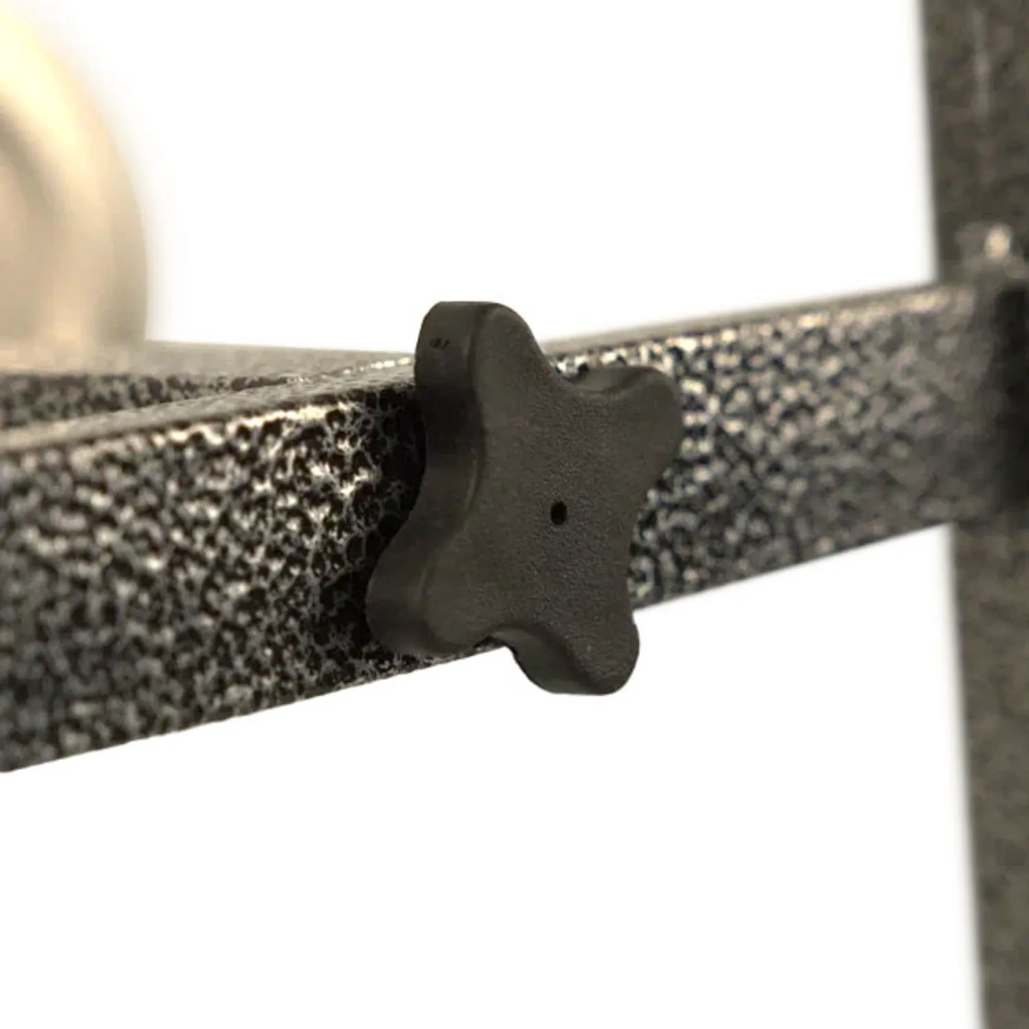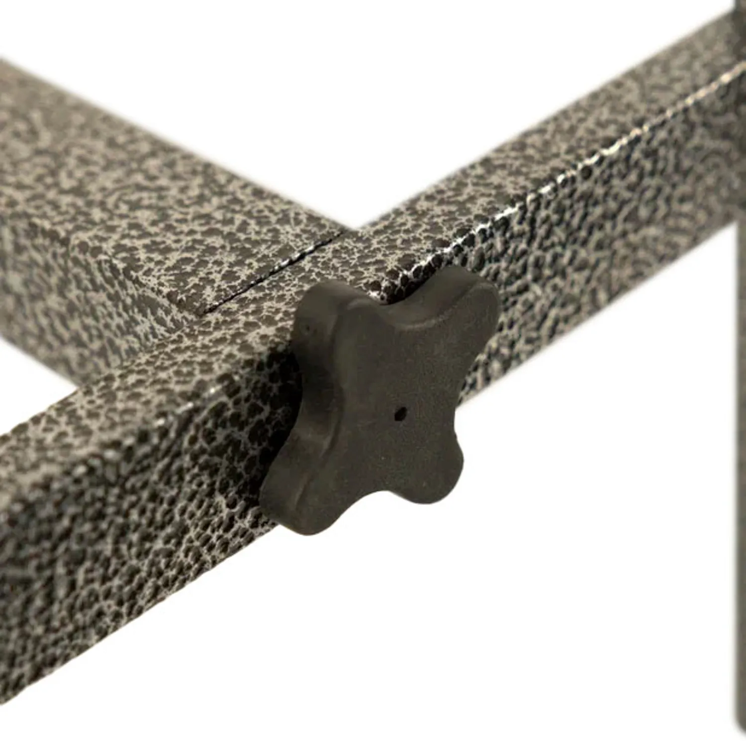 Металлическая стойка оснащена резиновыми ножками, что надежно фиксирует конструкцию на одном месте.