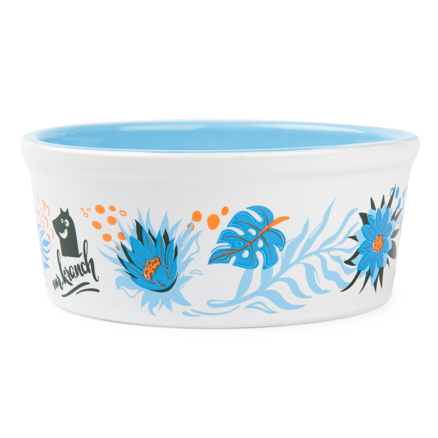 Миска Mr.Kranch для собак и кошек из фарфора Тропики 450мл голубая