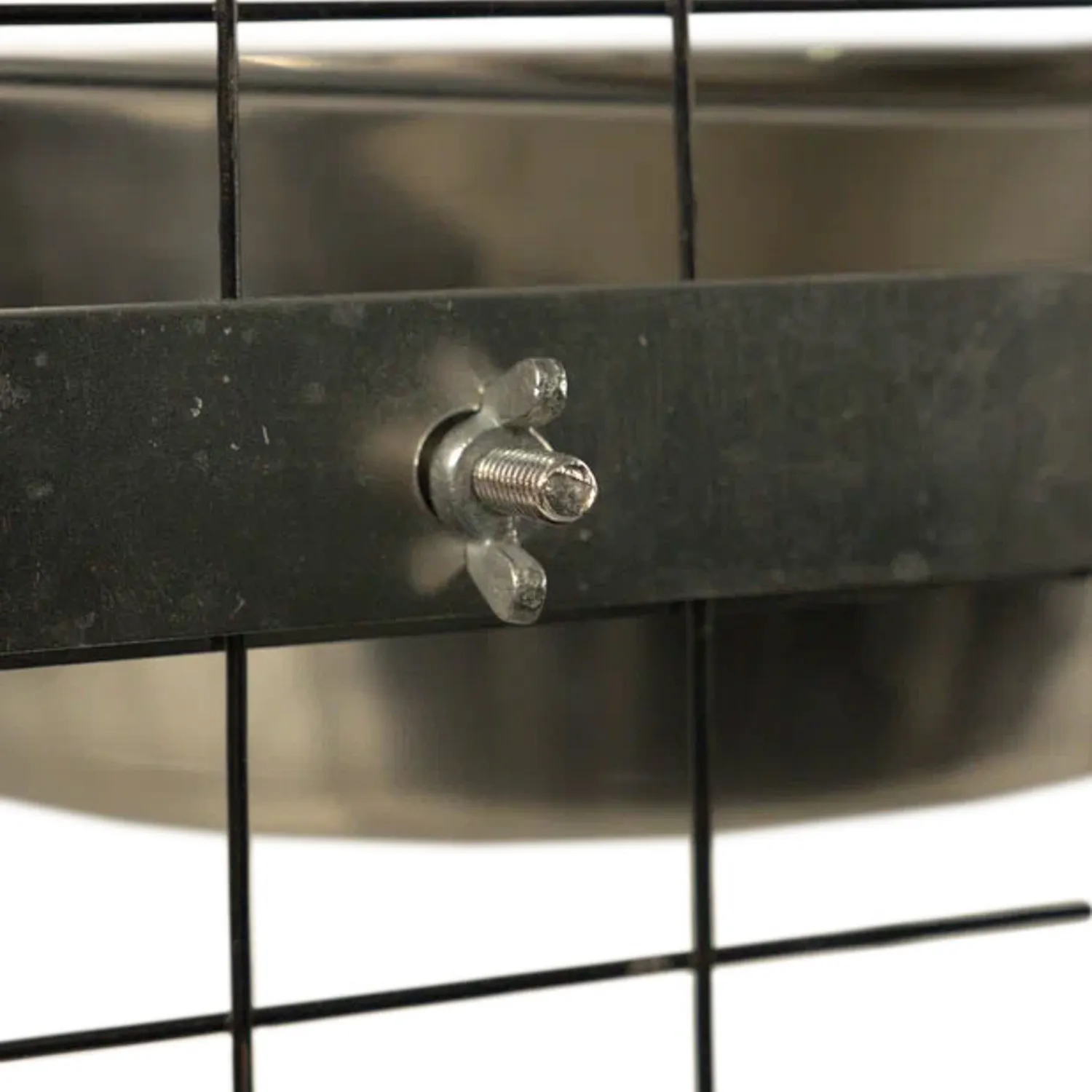Миска из нержавеющей стали с креплением для вольера на болтах.