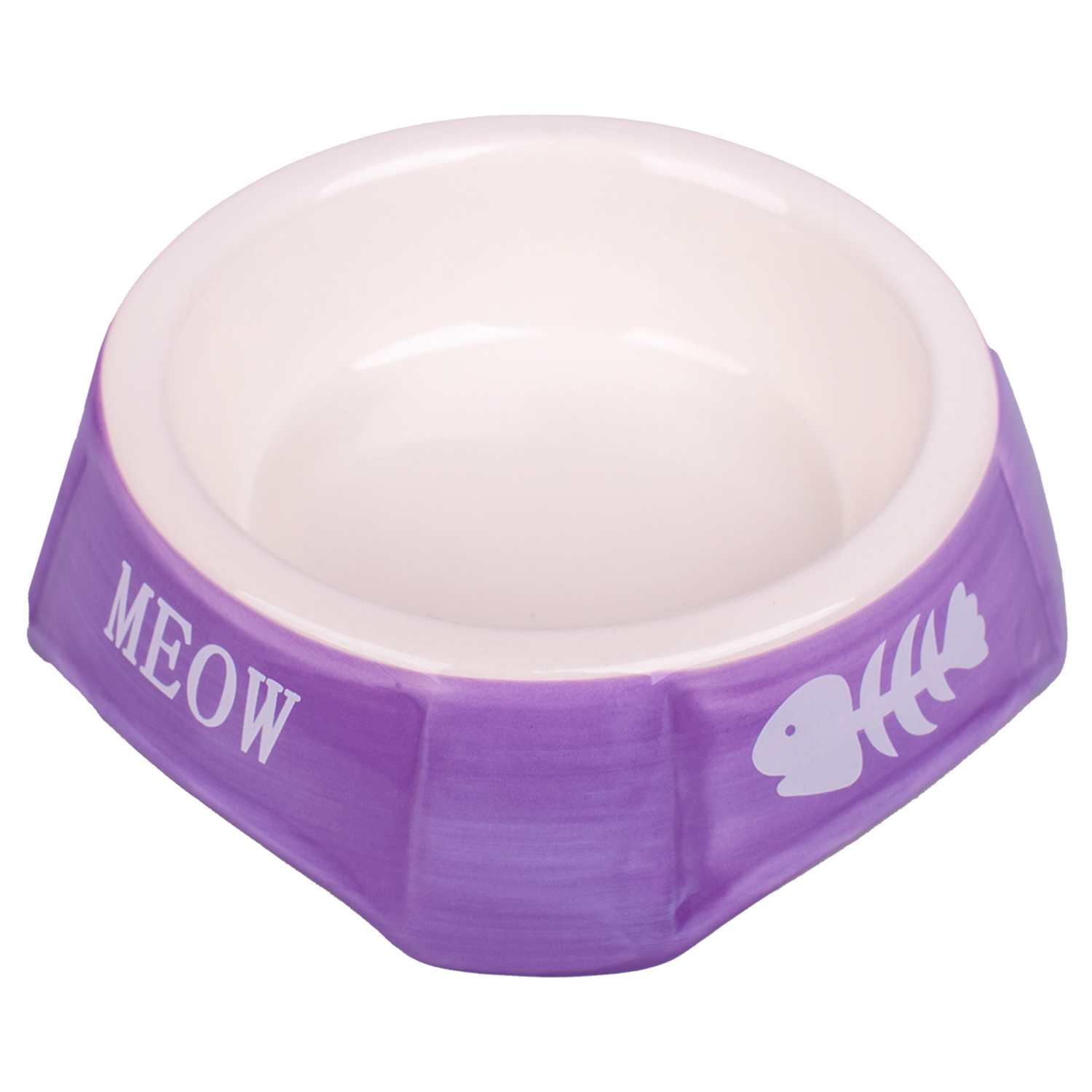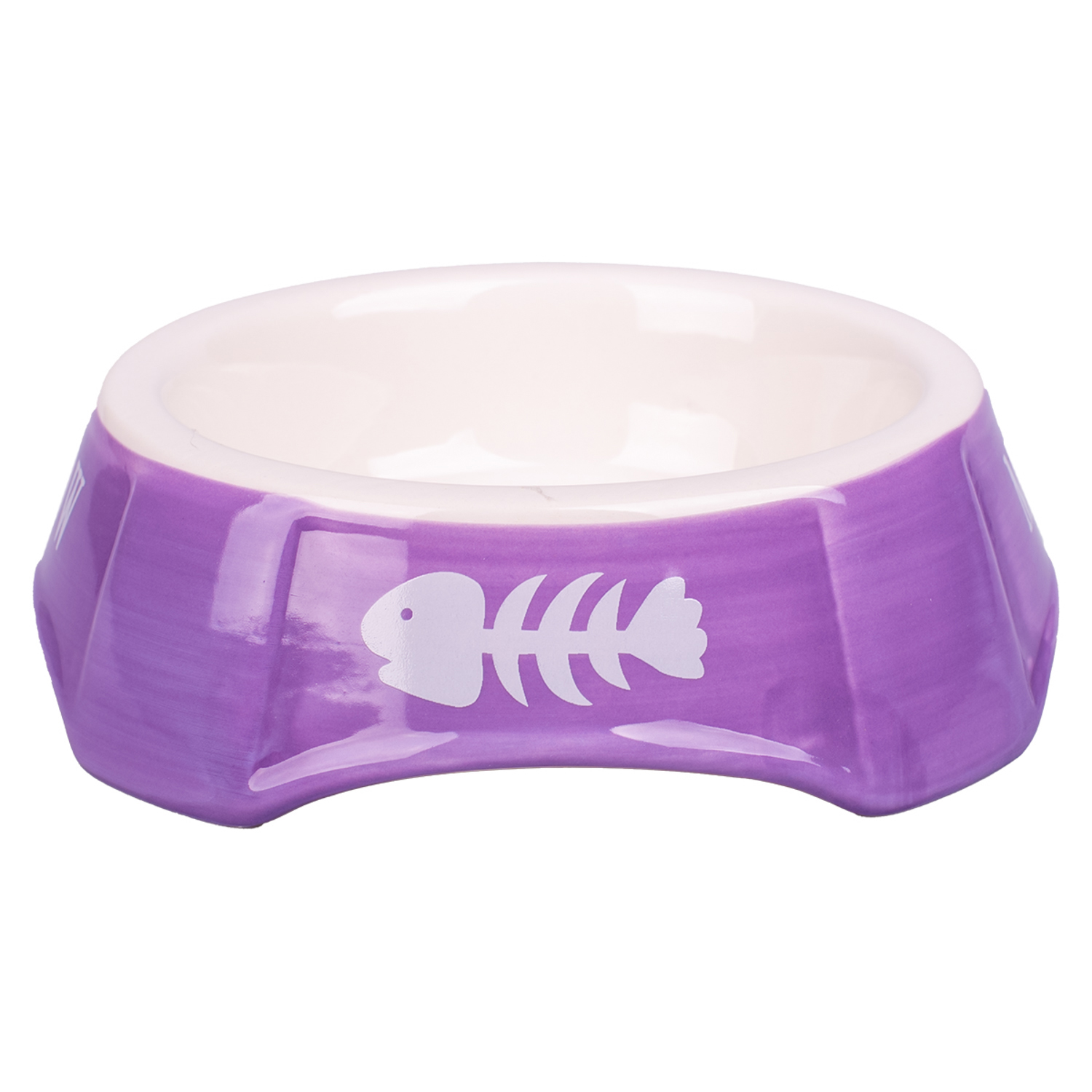 Миска Mr.Kranch керамическая для кошек 140 мл фиолетовая с рыбками
