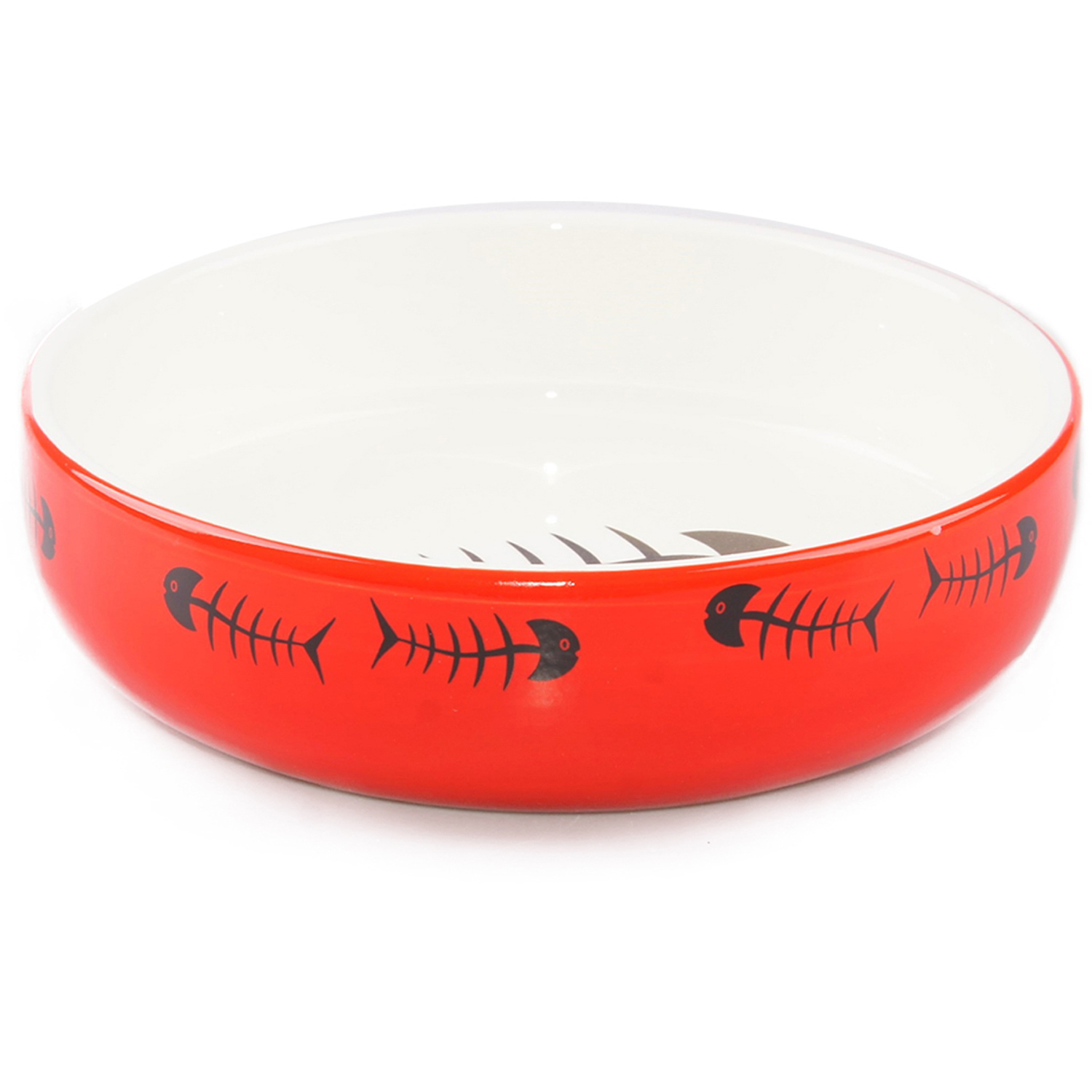 Миска Mr.Kranch керамическая для кошек 300 мл красно-белая с рыбками