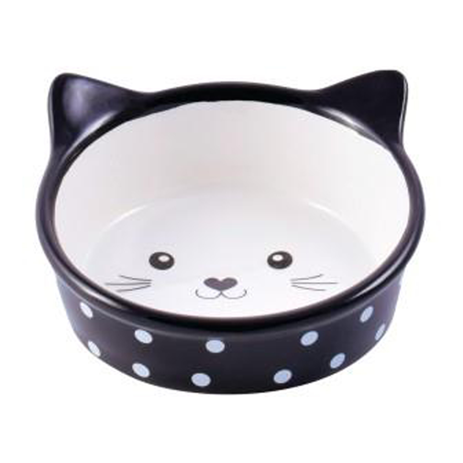 Миска Mr.Kranch керамическая для кошек Мордочка кошки 250 мл черная в горошек
