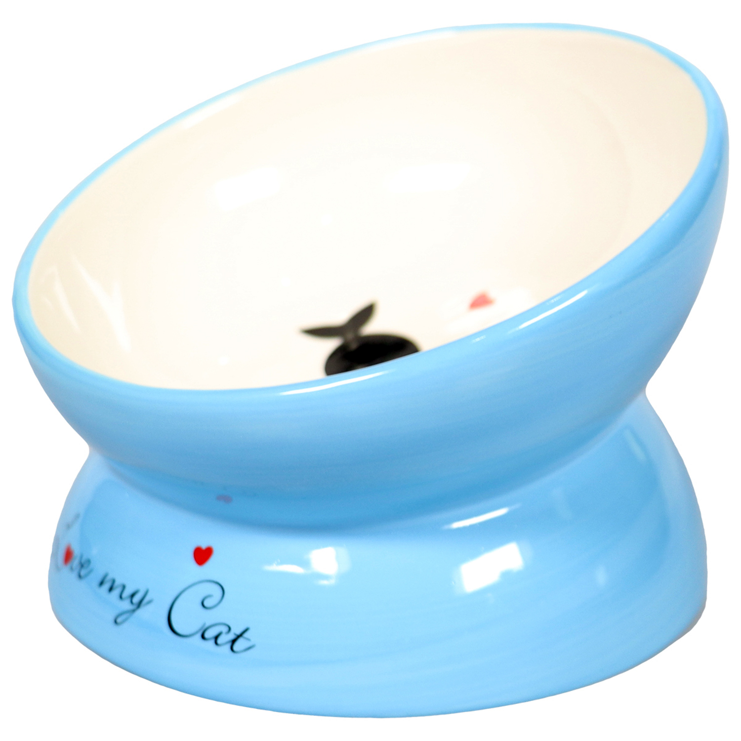 Миска Mr.Kranch керамическая для кошек на подставке 120 мл голубая