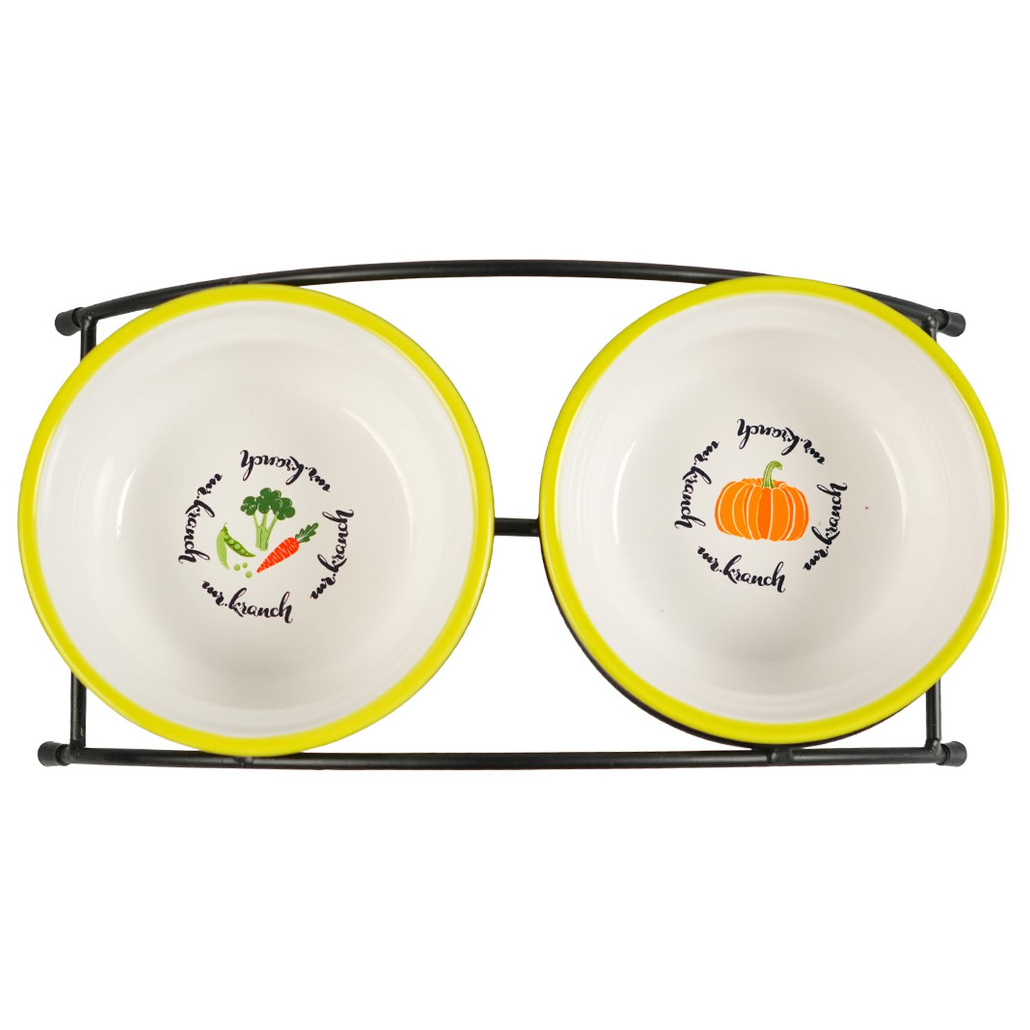 Миски Mr.Kranch на подставке для собак и кошек двойные 2x290 мл летние овощи салатовые