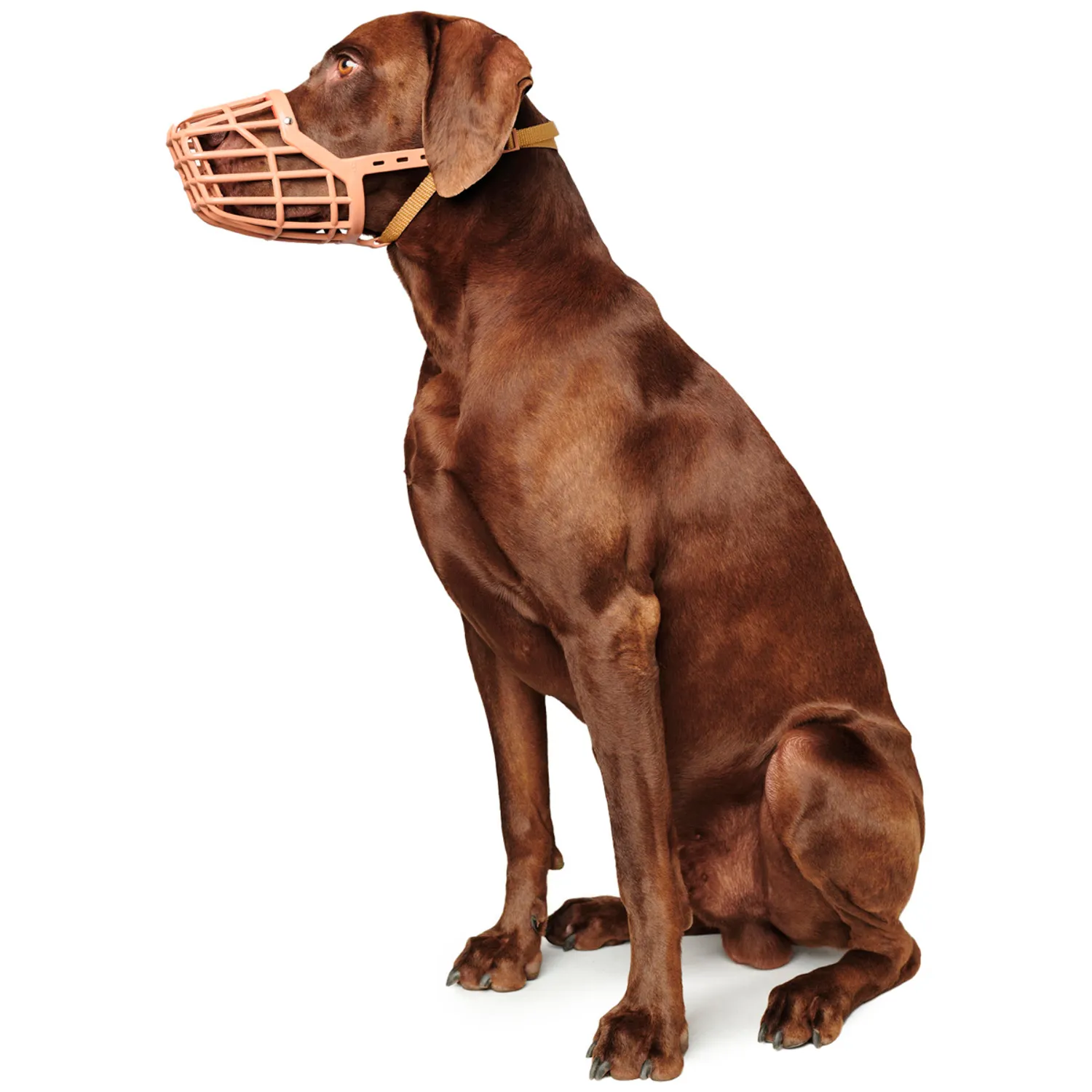 Благодаря своей форме позволяет собаке, лаять, принимать корм, пить воду.