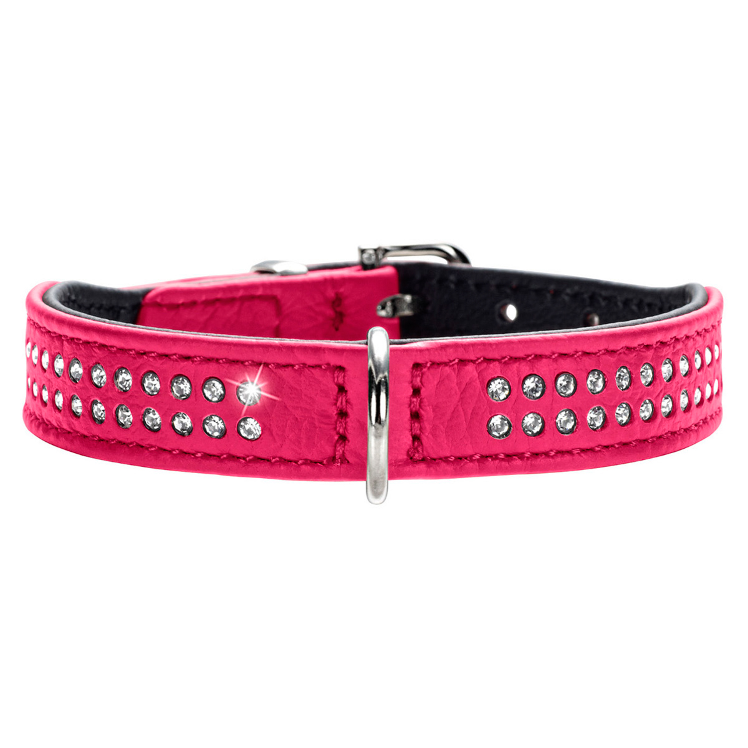Hunter ошейник для собак Diamond petit 27 (20-24 см) кожа 2 ряда страз розовый СКИДКА 50%