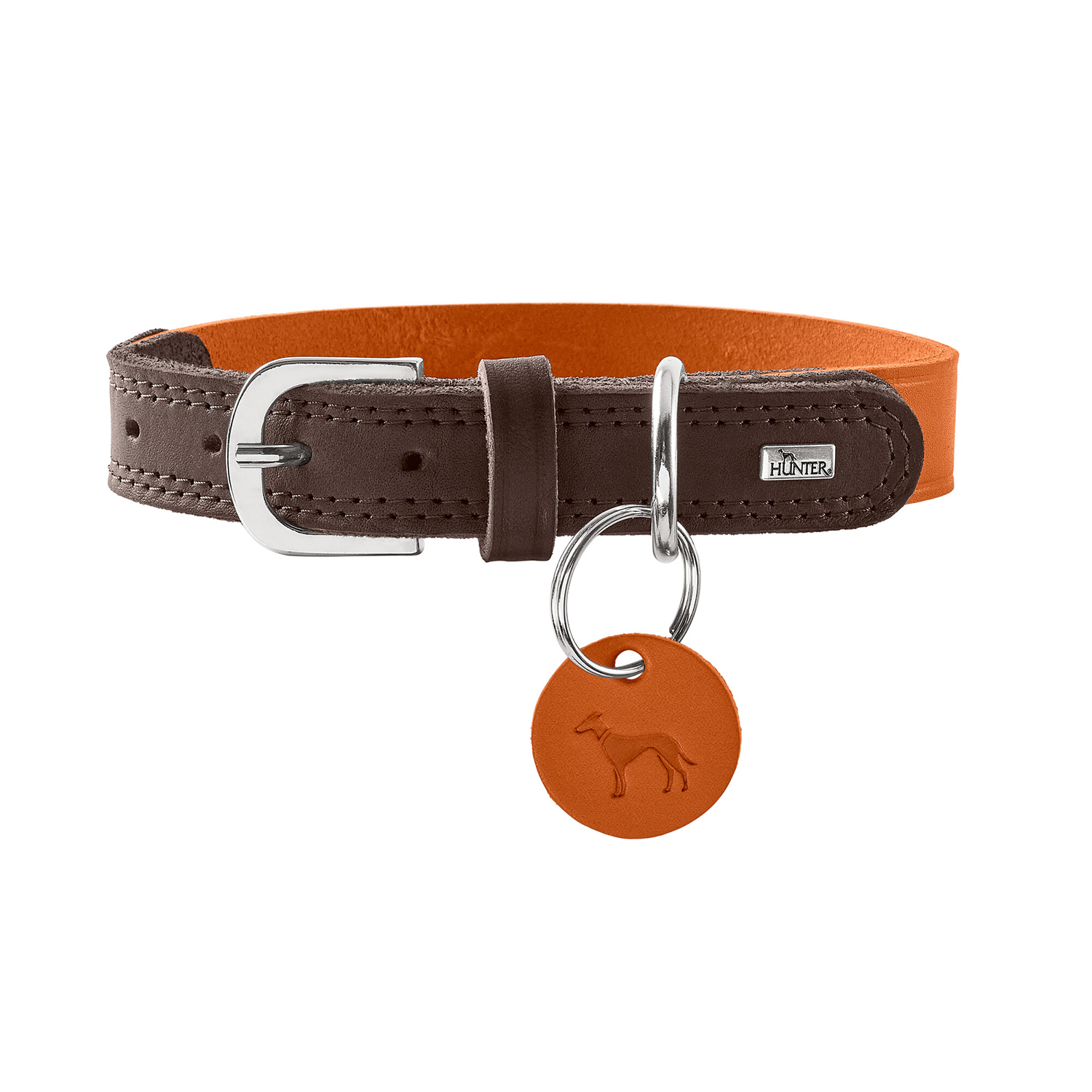 Hunter ошейник для собак Lemvig M (55 см), натуральная кожа, коричнево-оранжевый дуотон