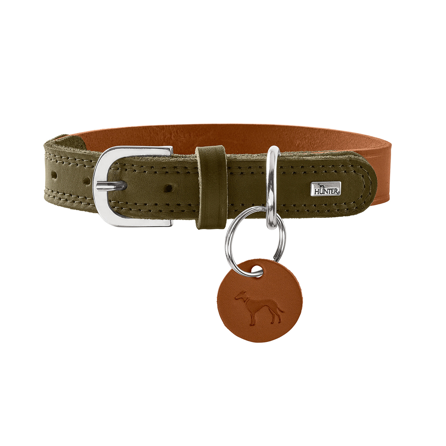 Hunter ошейник для собак Lemvig M-L (60 см), натуральная кожа, оливково-коричневый дуотон