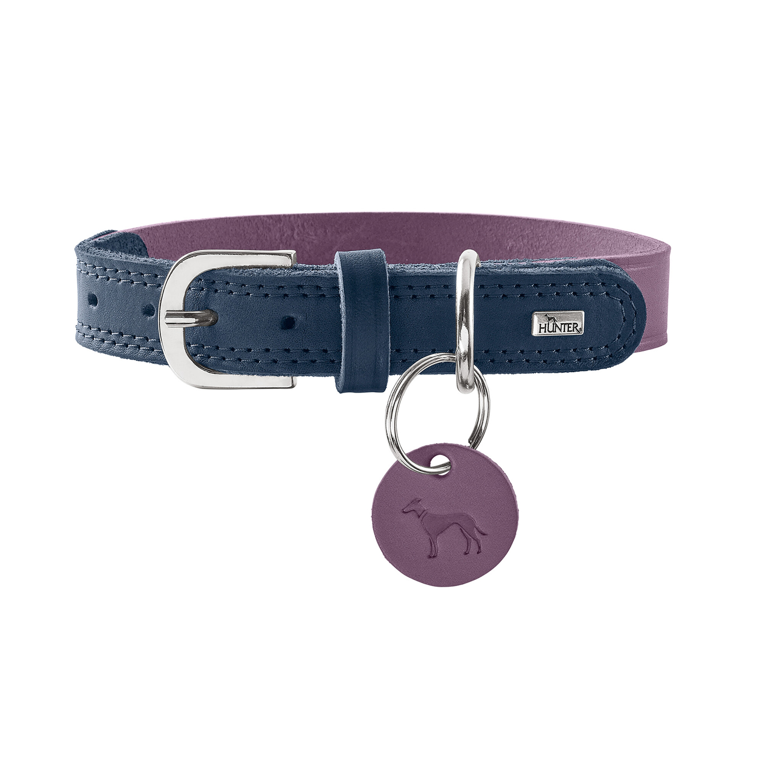 Hunter ошейник для собак Lemvig S-M (50 см), натуральная кожа, сине-лавандовый дуотон
