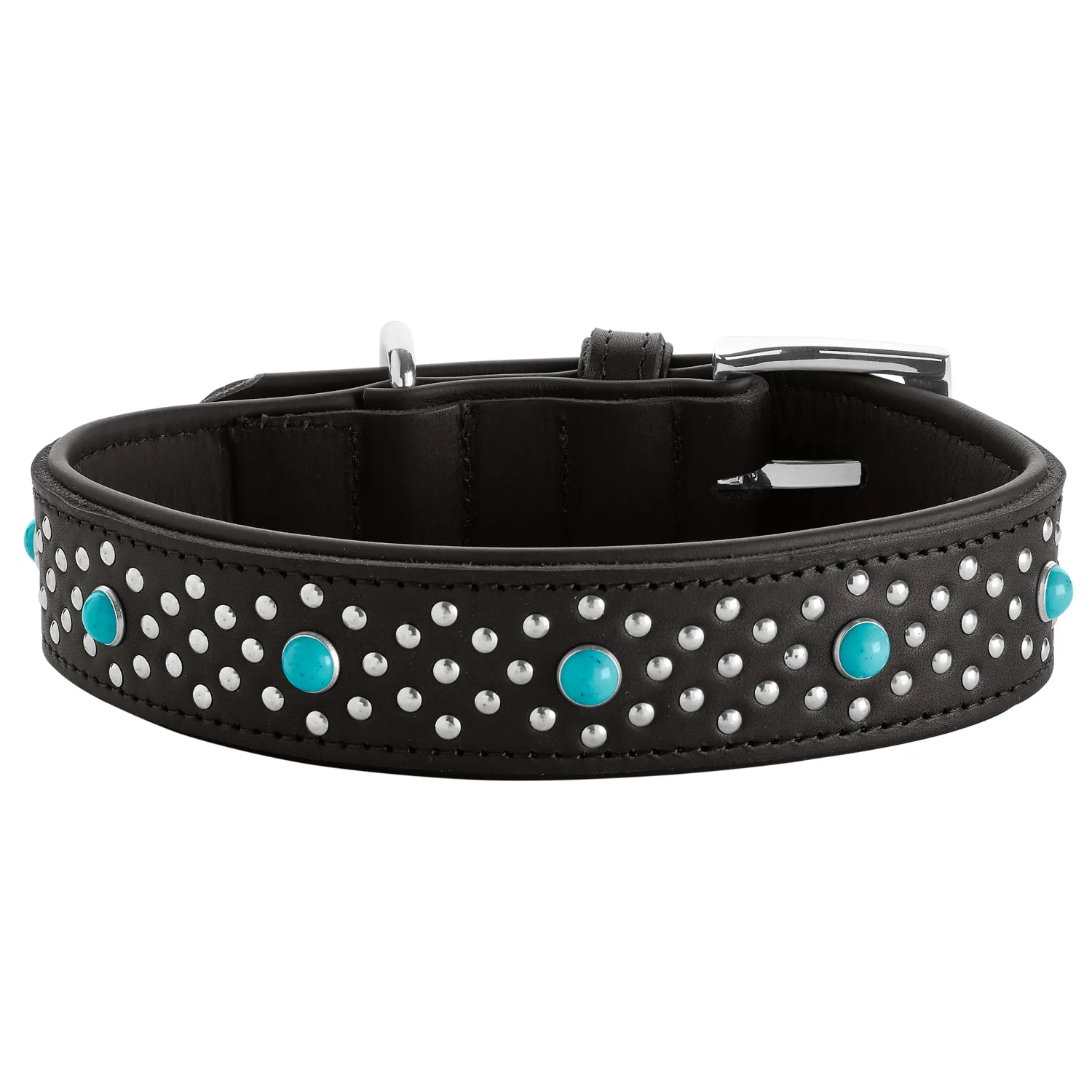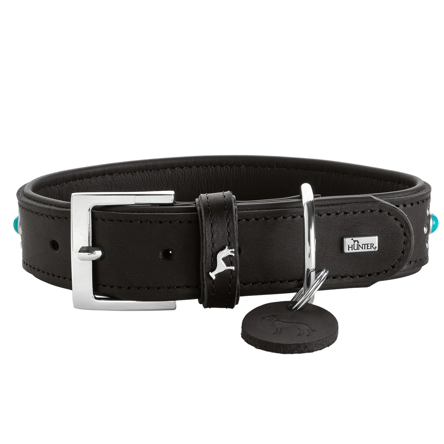 Hunter ошейник для собак Madona M (35-45 см) натуральная кожа, черный, фурнитура с имитацией бирюзы