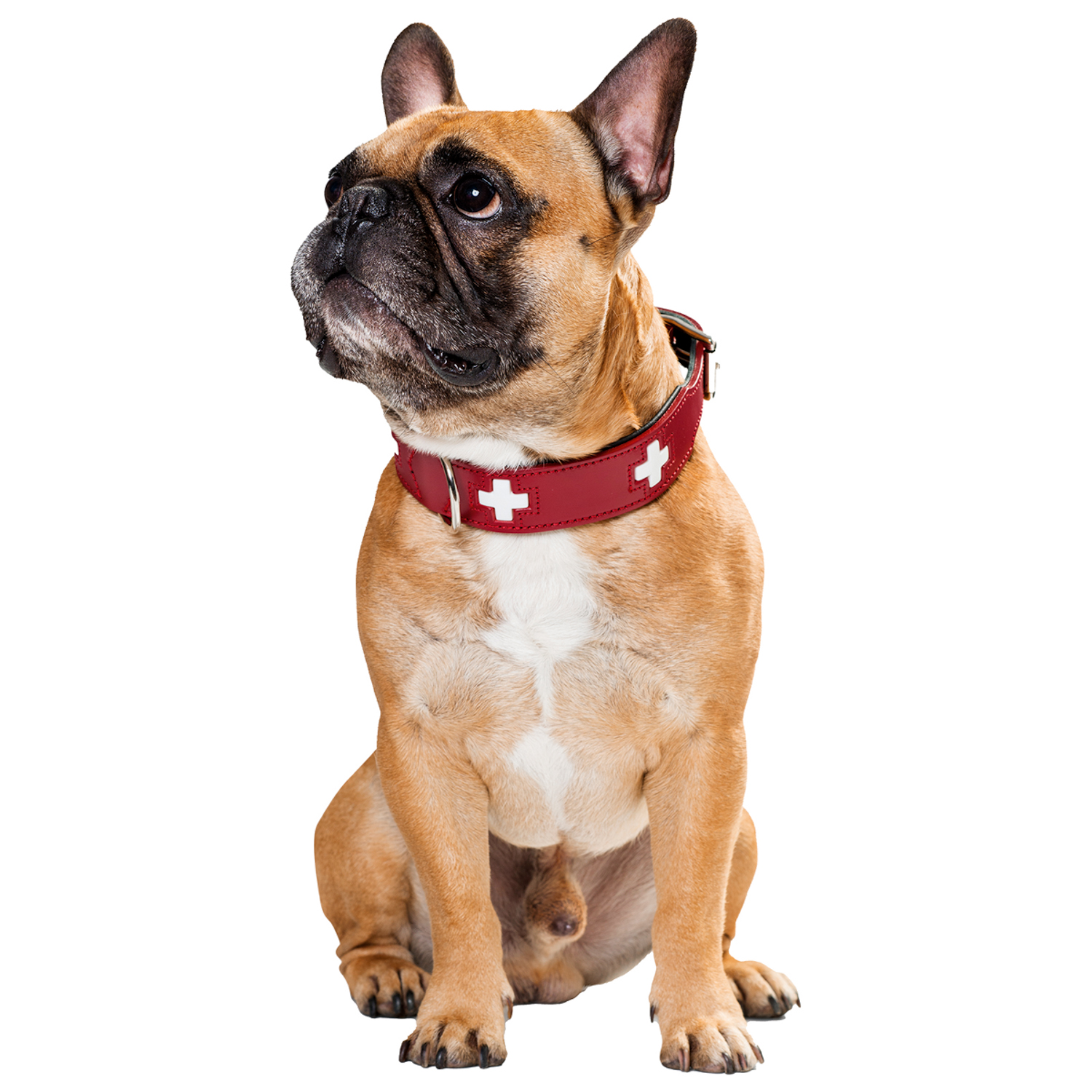 Hunter (Хантер) Swiss 65 (Свисс) – это ошейник для собак крупных пород из экологической, мягкой и эластичной кожи, изготовленный немецким производителем Hunter. Он регулируется в диапазоне от 51 до 58,5 см. Ширина ошейника составляет 3,9 см. Металлические части покрыты никелем. Цвет: красный/черный, модный дизайн "швейцарский флаг". Хорошо смотрится на собаках светлых мастей, подходит породам: Лабрадор, Аргентинский дог и т.д.