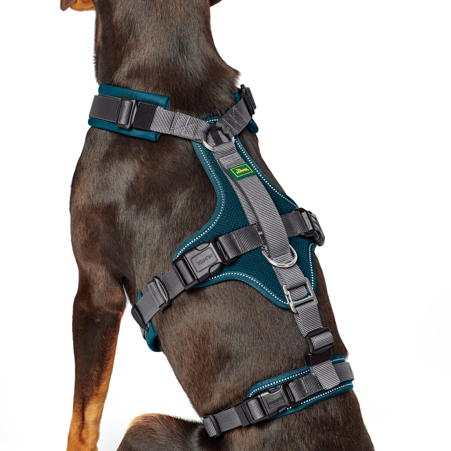 Hunter шлейка для собак Safety Maldon M-L (57-98 / 60-91 / 2,5 см) с ручкой, нейлон, сине-зеленый/серый