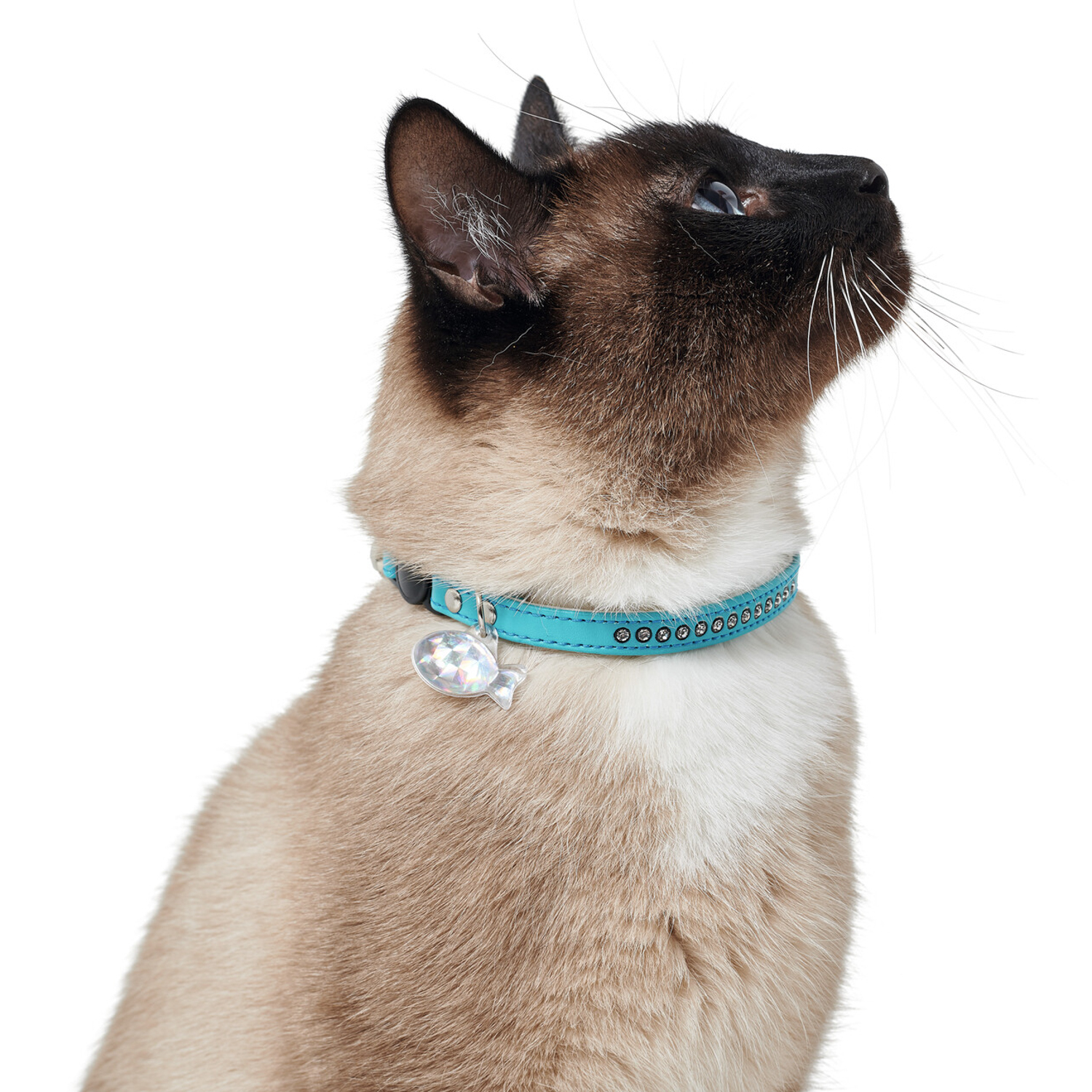 Ошейник для кошек Modern Luxus со стразами, бирюзовый.