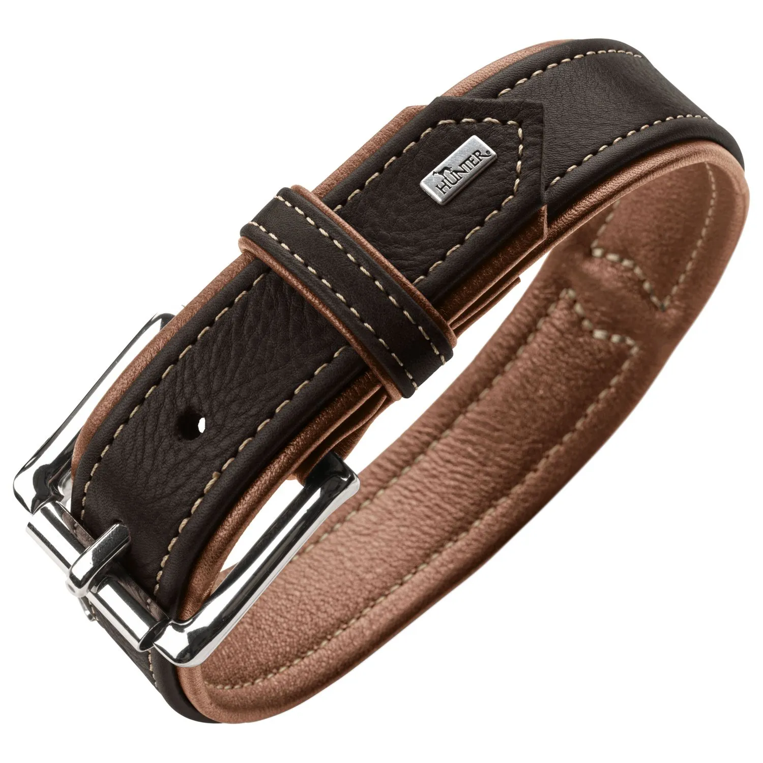 Ошейник Hunter Canadian UP для собак, обхват 50-56 см, длина 65 см, черный/коньячный