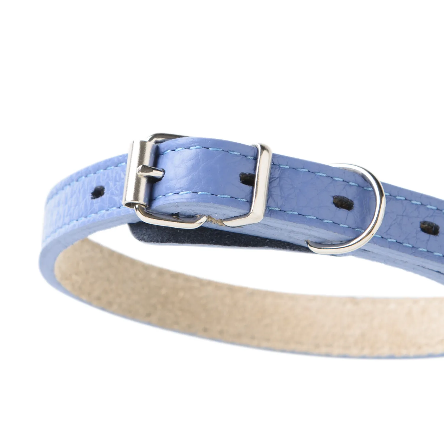 Ошейник Mr.Kranch для собак из натуральной кожи прямой 17-20см васильковый СКИДКА 40%