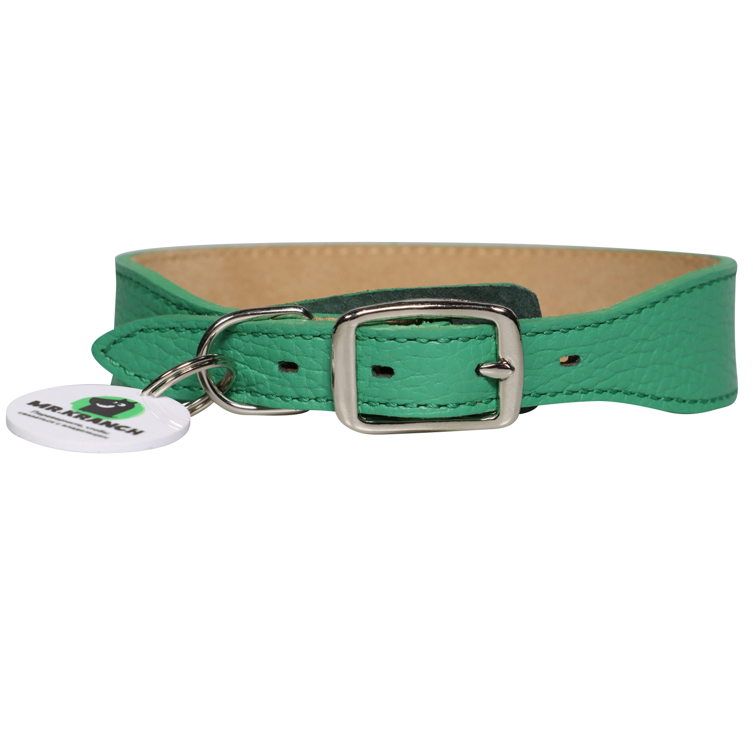 Ошейник Mr.Kranch для собак из натуральной кожи с QR-адресником 38-45см зеленый СКИДКА 40%