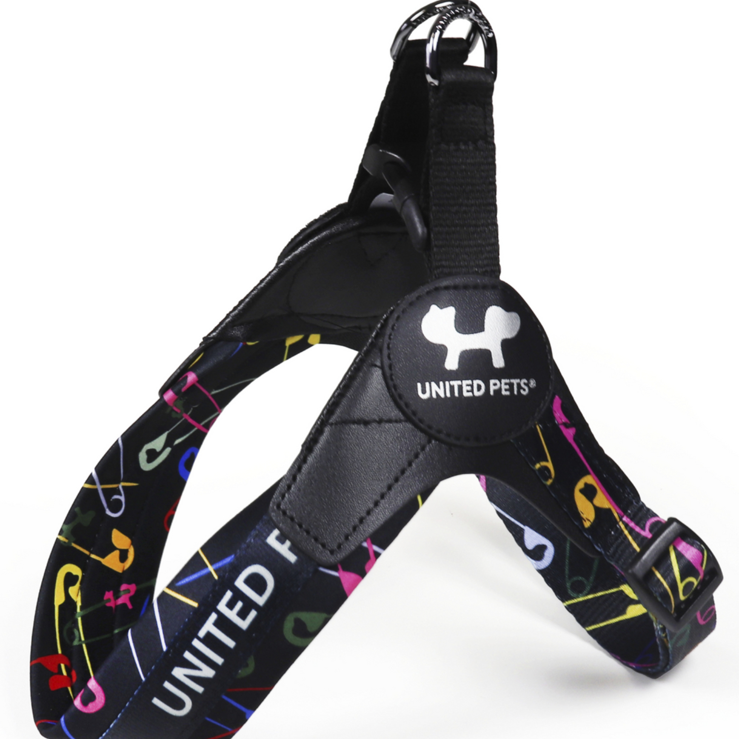 Шлейка United Pets для собак Complete me 0.5 - XXXS 25-33, черный с разноцветными булавками