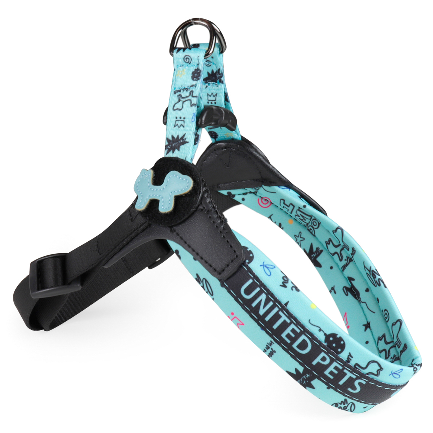Шлейка United Pets для собак Complete me Writing 1,5 x 34-42 см, голубая с рисунком