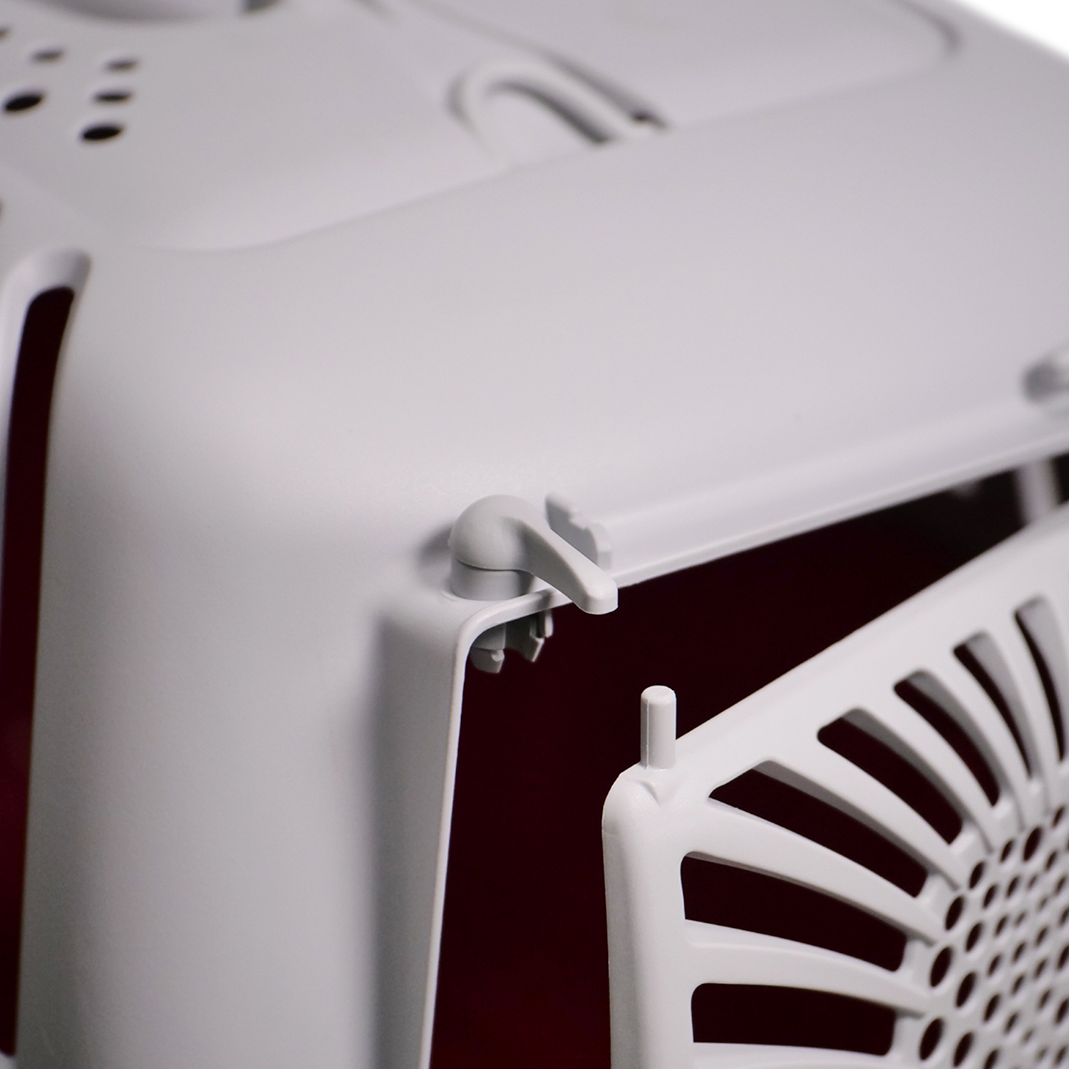 Специальные ножки на поддоне не дают царапать нижнюю поверность переноски и обеспечивают ее устойчивость, а крышка с влитой ручкой и 2 петли для крепления ремня облегчают процесс транспортировки питомца.