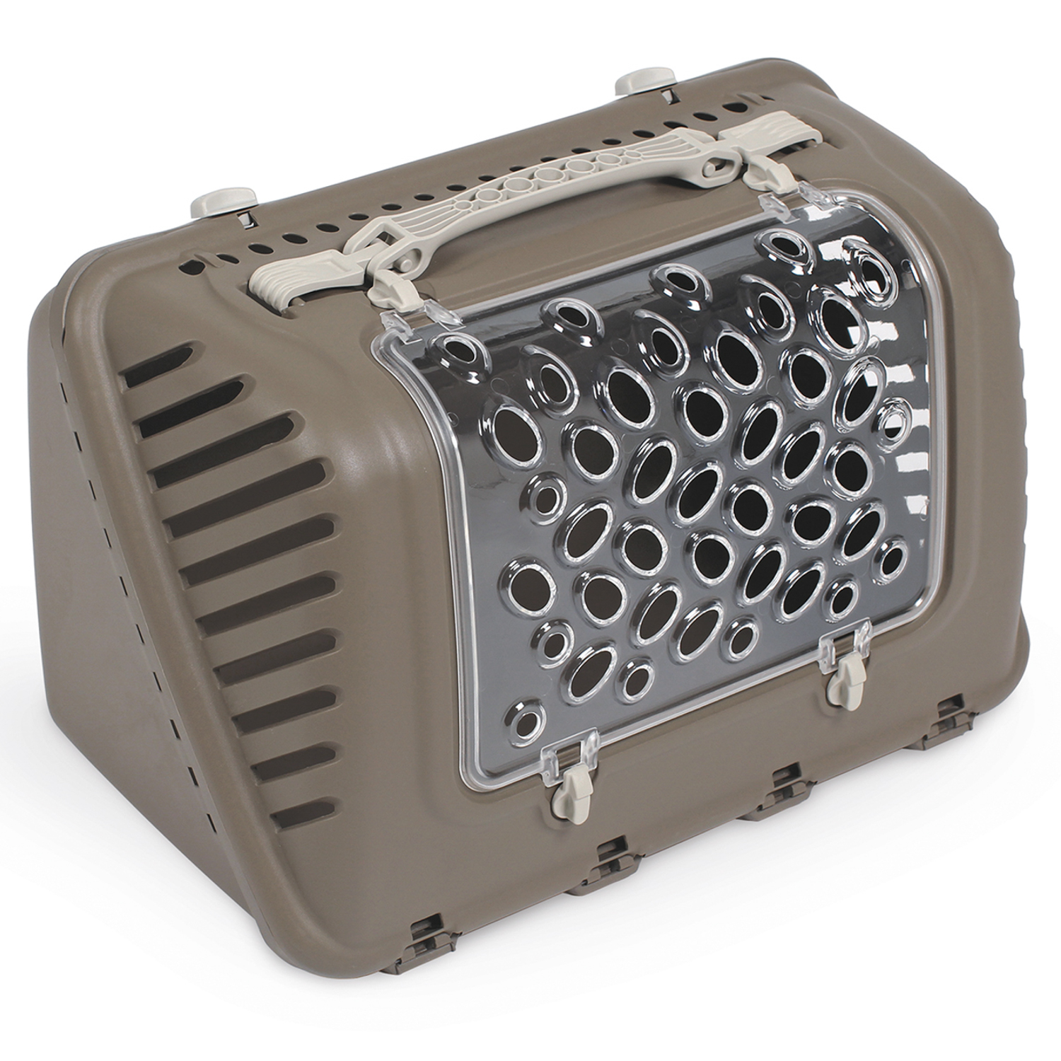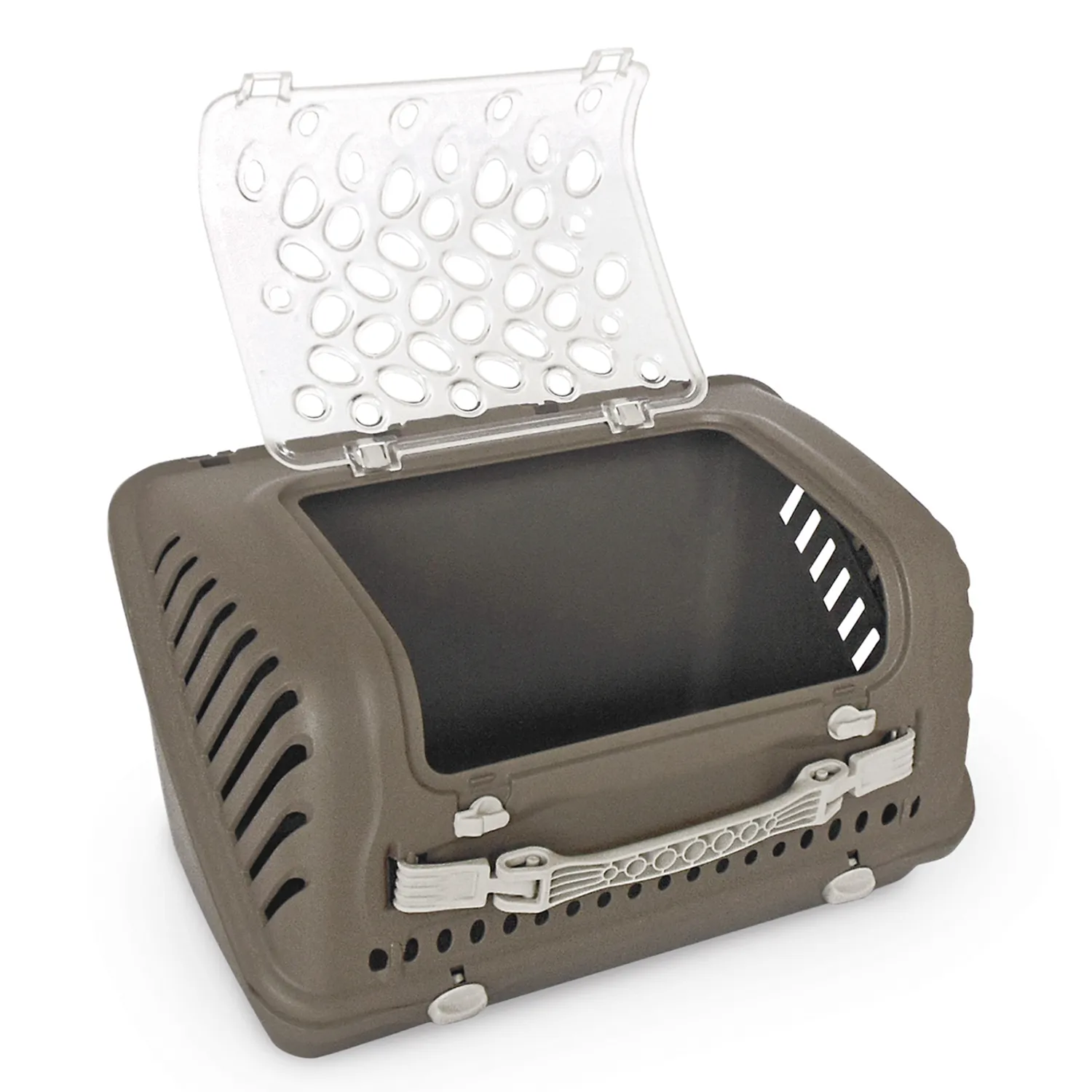 Выполненная из высококачественного пластика. Переноска оснащена перфорацией для вентиляции воздуха, удобной ручкой, в комплекте плечевой ремень. Прозрачная пластиковая дверца открывается в двух направлениях: с низу вверх и наоборот.
