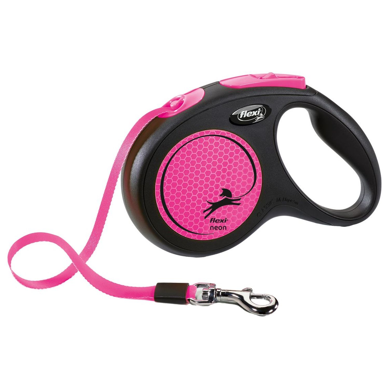 flexi рулетка Neon New M (до 25 кг) лента 5 м, светоотражающая,розовый неон