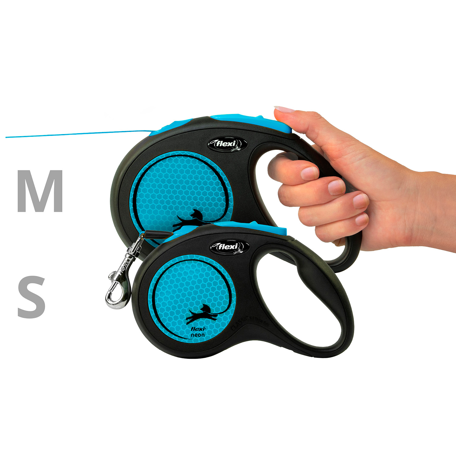 flexi рулетка Neon New S (до 15 кг) лента 5 м, светоотражающая, голубой неон