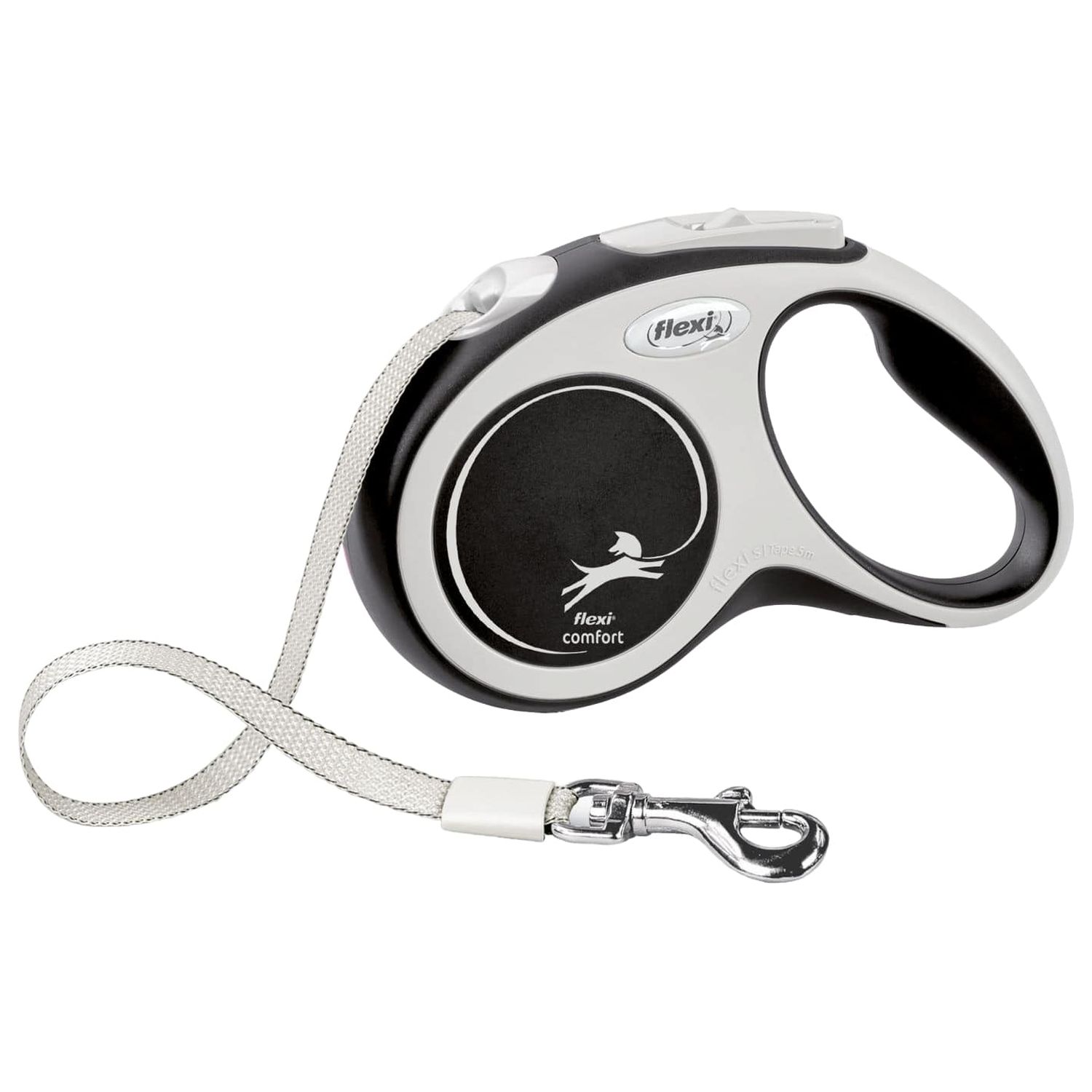 flexi рулетка NEW LINE Comfort S (до 15 кг) лента 5 м серый/черный