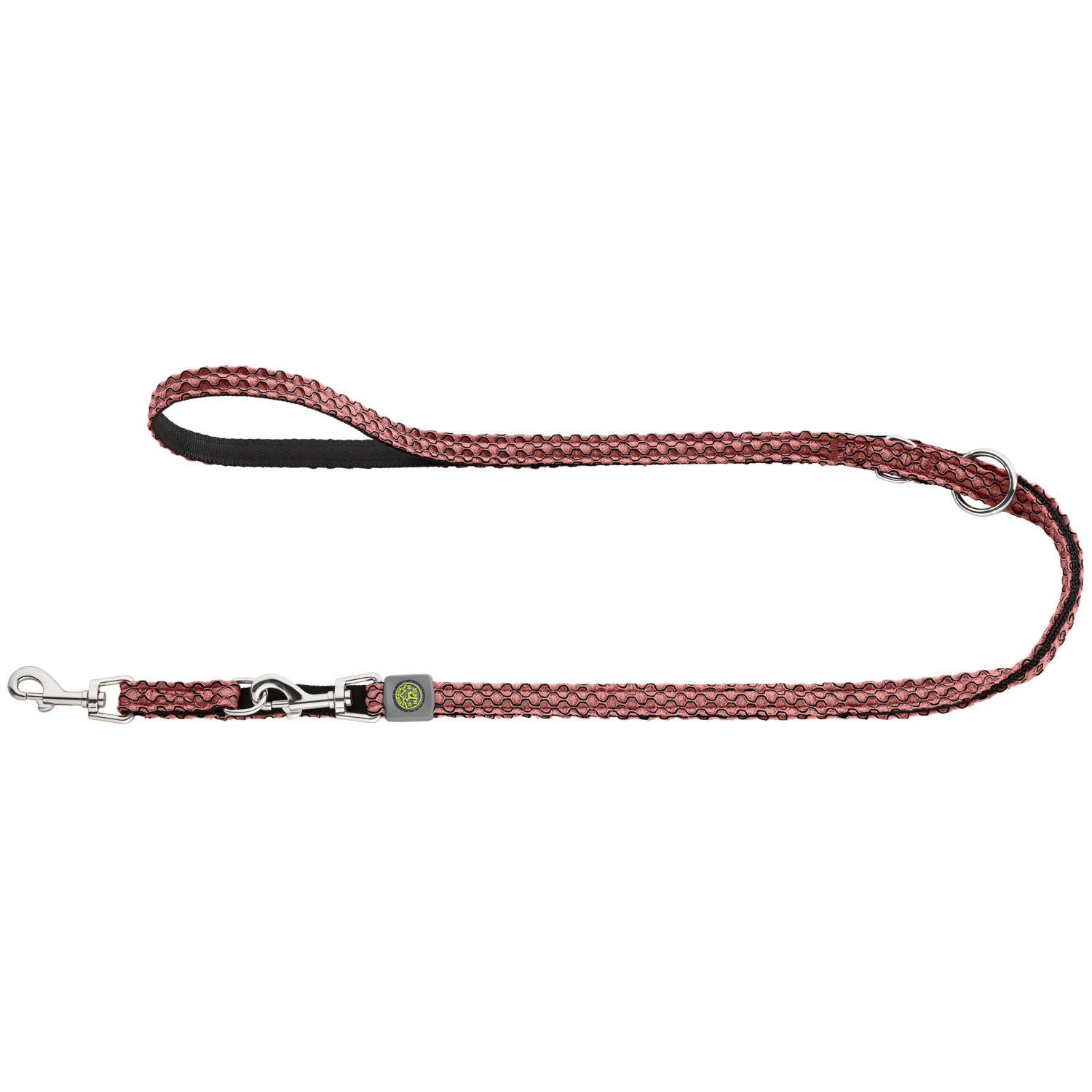 Благодаря второму карабину (вместо ручки) и 3 кольцам поводок можно по-разному комбинировать и изменять длину поводка.
