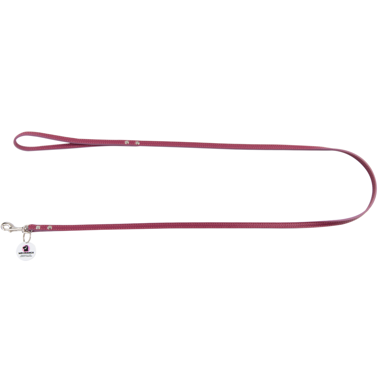 Поводок Mr.Kranch для собак из натуральной кожи с QR-адресником 130см 8мм малиновый СКИДКА 50%