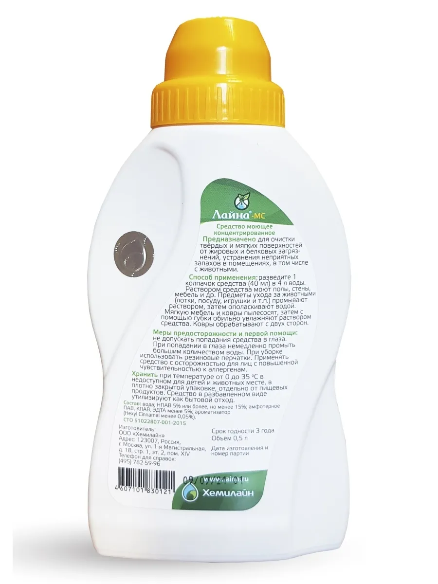 Концентрированное моющее средство Лайна-МС предназначено для уборки помещений, где обитают домашние животные. Используется для всех видов поверхностей, в том числе пола, туалета, игрушек и т.д. Отлично удаляет загрязнения и запахи. Очень экономично в использовании (1 колпачок (40 мл) на 4л воды). Безопасно для людей и животных. Не содержит хлора, кислоты и спирта.