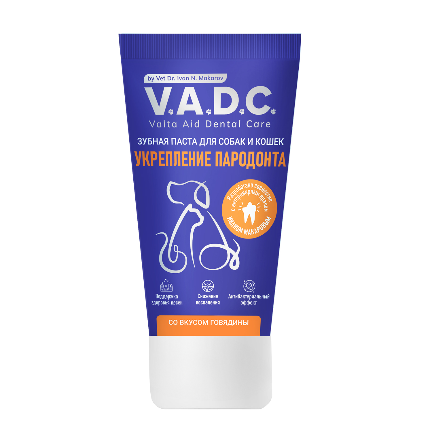 V.A.D.C. (ВИ.ЭЙ.ДИ.ЭС.) «Укрепление пародонта» зубная паста с ароматом говядины для собак и кошек, 50 мл