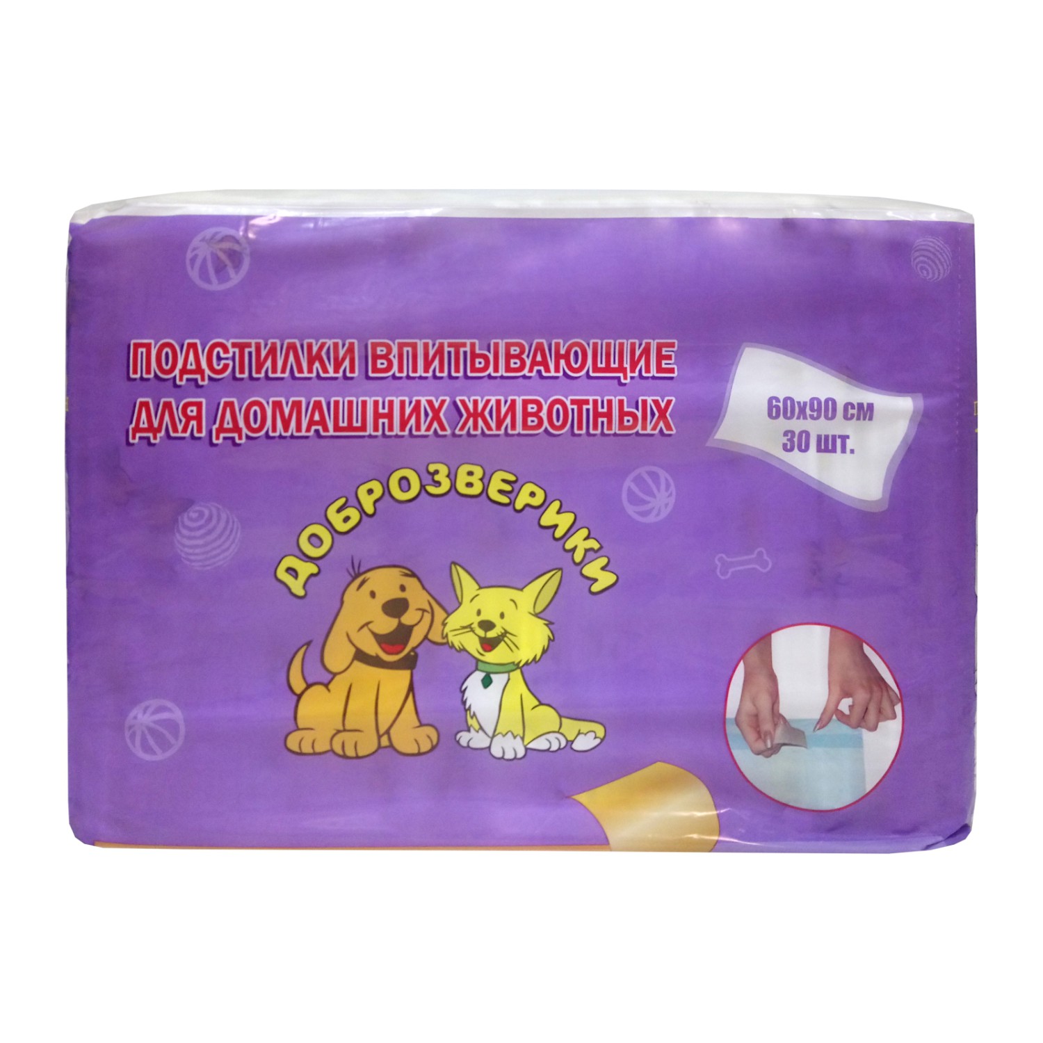 Доброзверики подстилки (пеленки) для животных с липким фиксирующим слоем 60х90, 30 шт.