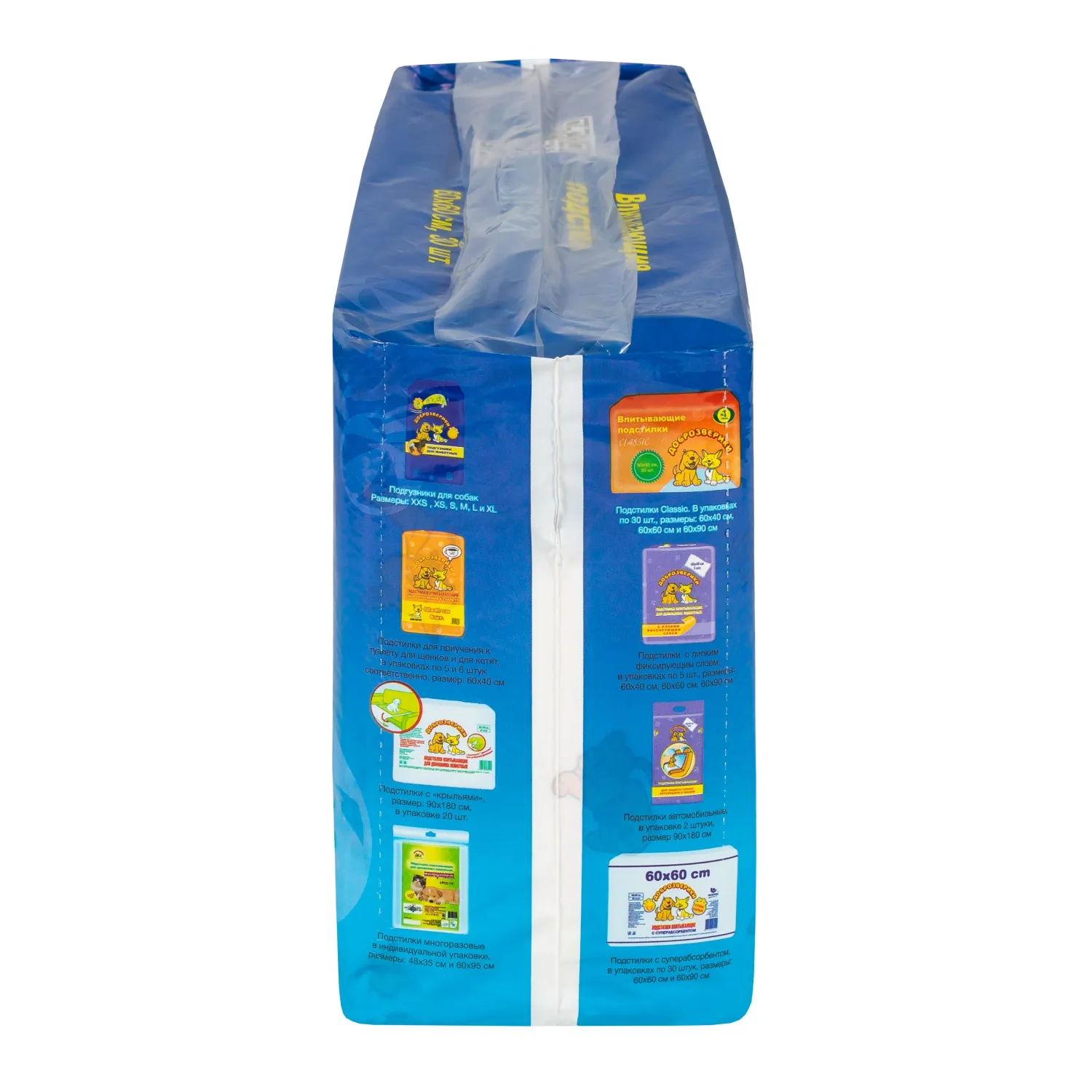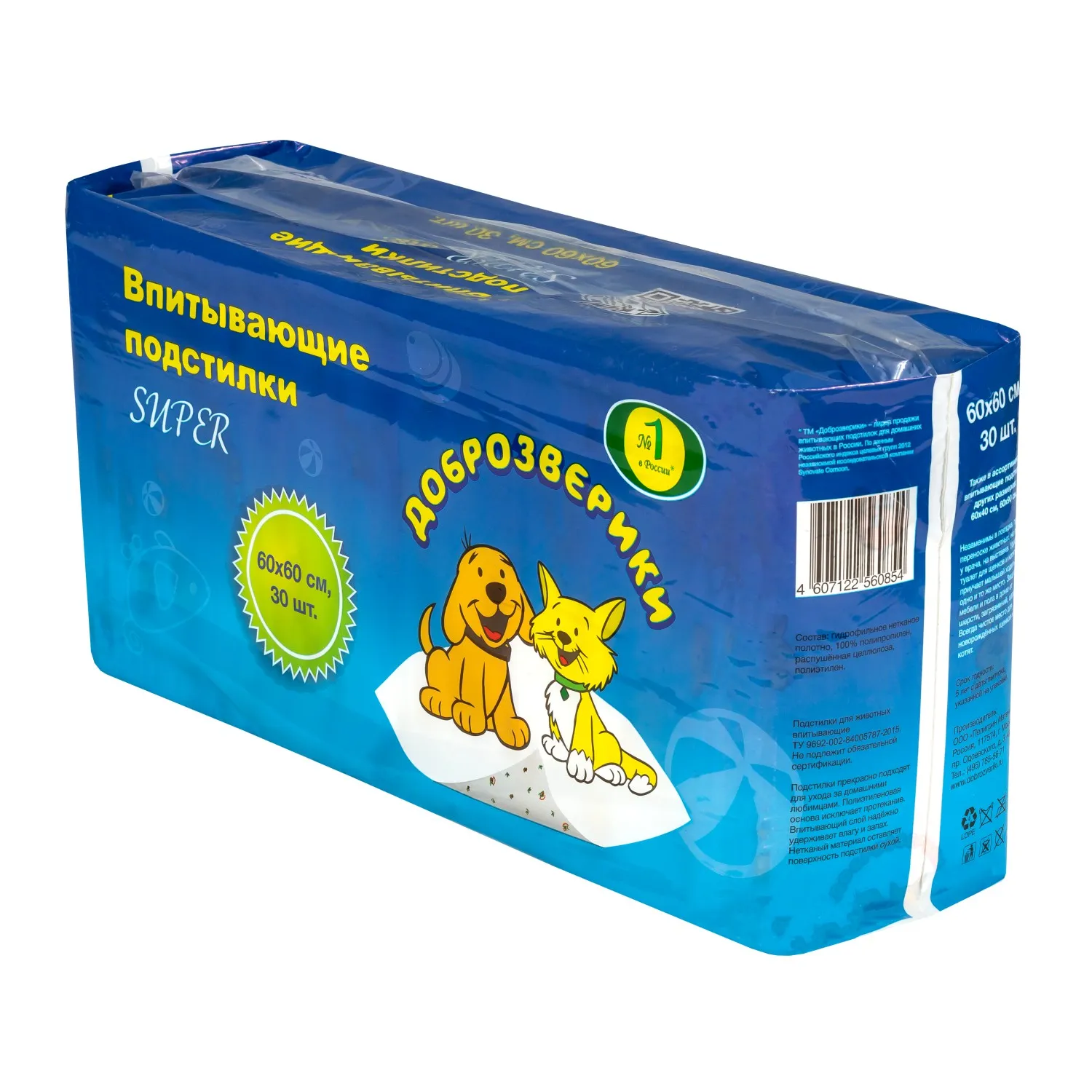 Доброзверики подстилки (пеленки) для животных "Super" с рисунком 60х60, 30 шт.