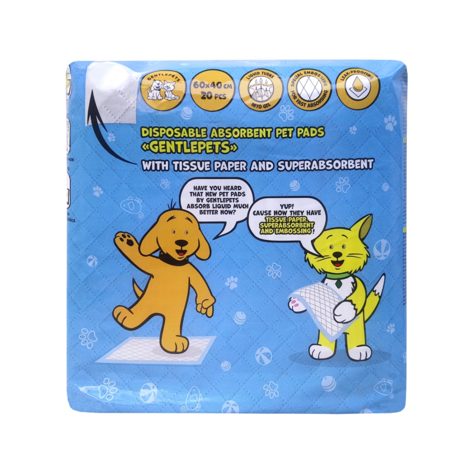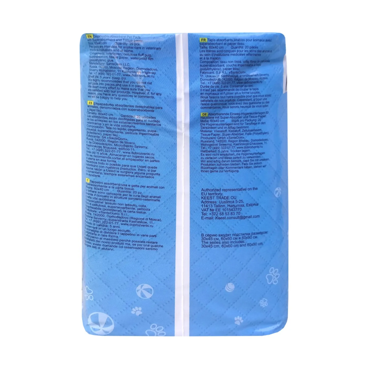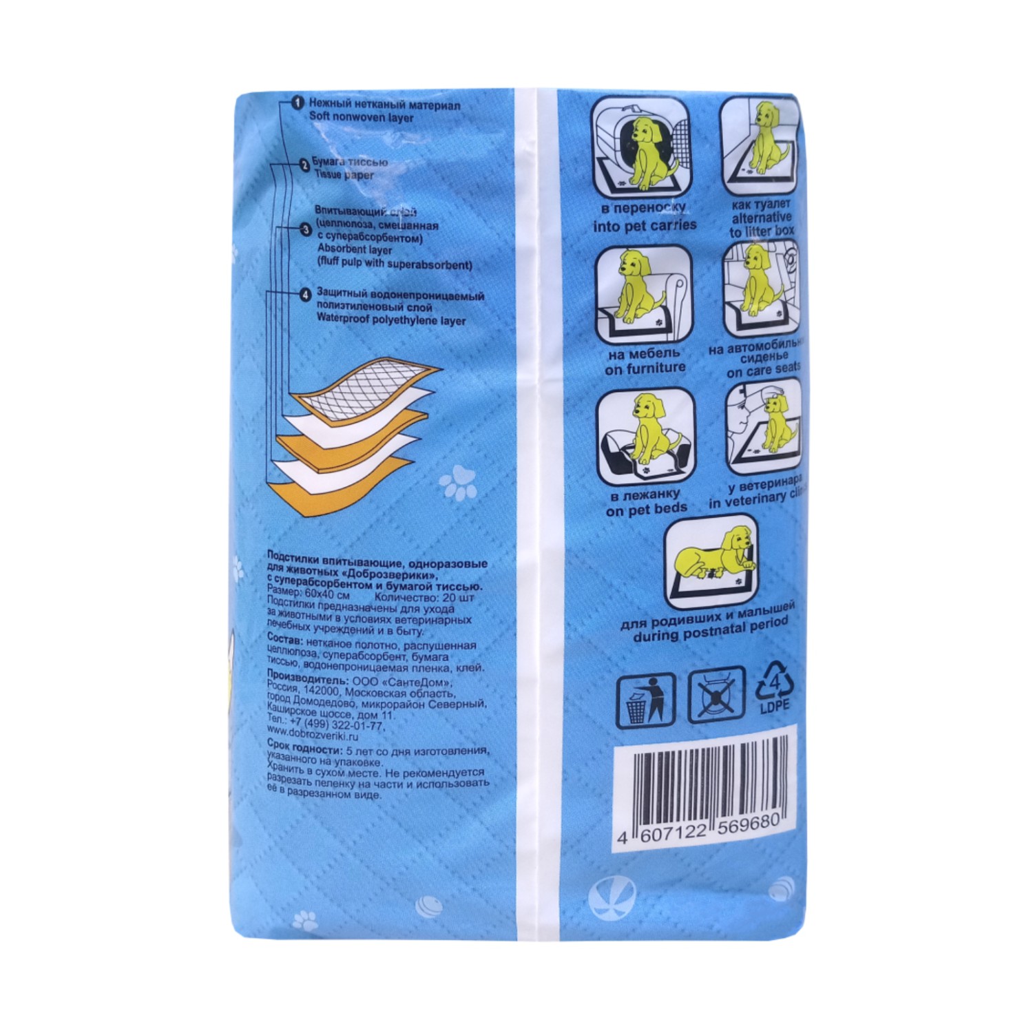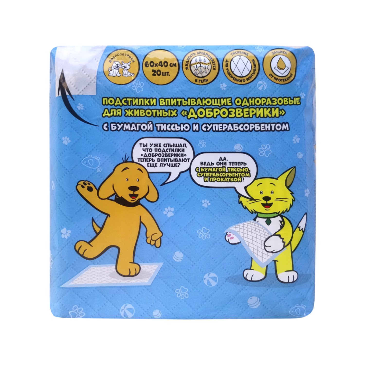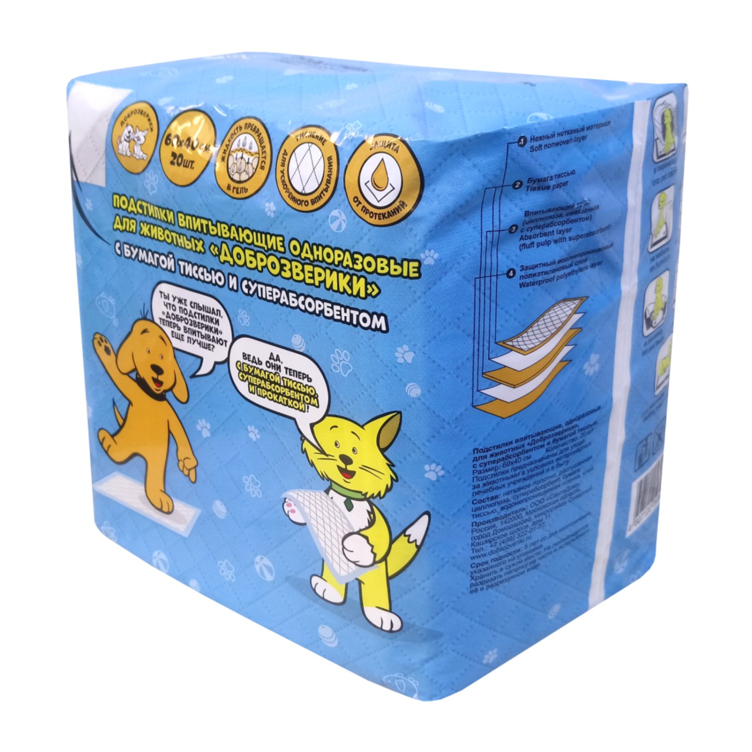 Доброзверики подстилки впитывающие для животных с бумагой тиссью и суперабсорбентом 60х40 см, 20 шт