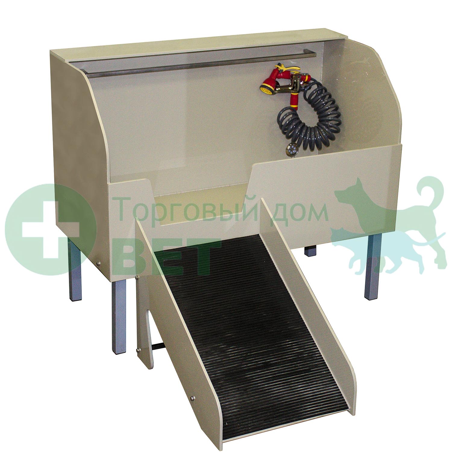 Трап используется вместе с ванной для мытья собак, чтобы заводить крупных животных "своим ходом".