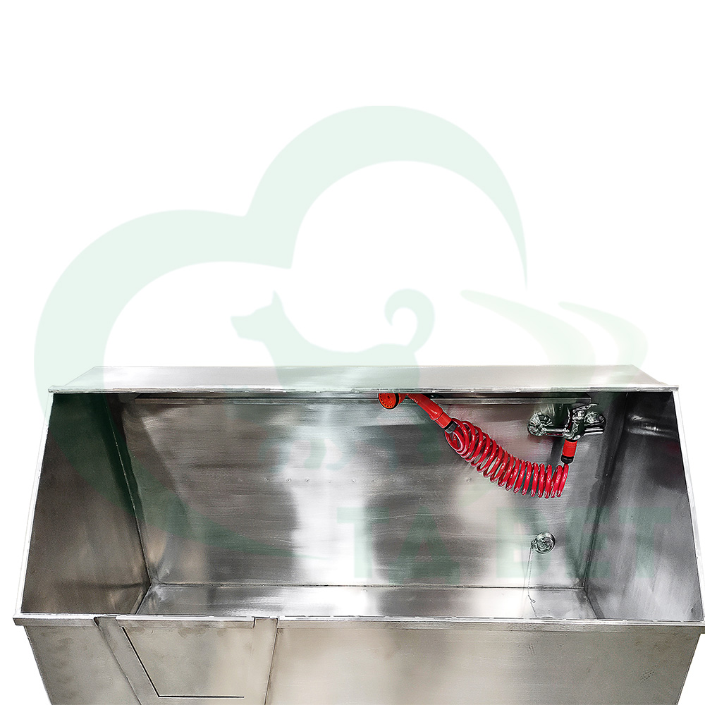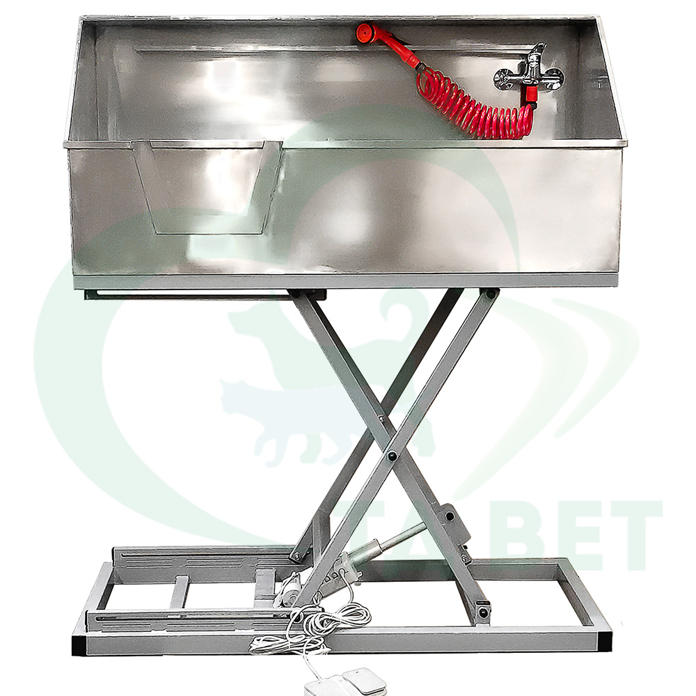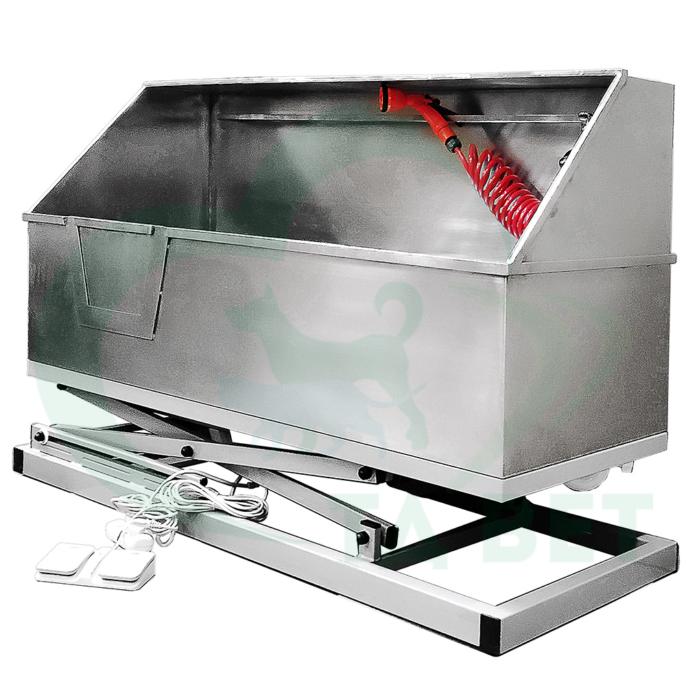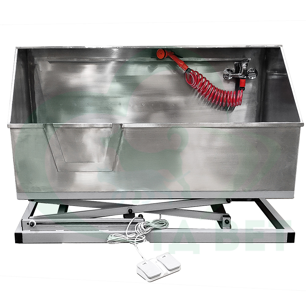 Ванна для мытья животных VETBOT из нержавеющей стали с электроприводом обеспечивает удобное и комфортное мытье животных во время груминга.