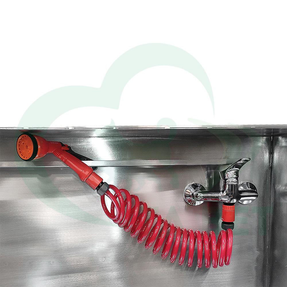 Обращаем ваше внимание, что ванна предназначена для мытья животных проточной водой, а не для набора в нее воды. Максимальный уровень набранной воды должен быть не более 10 см!