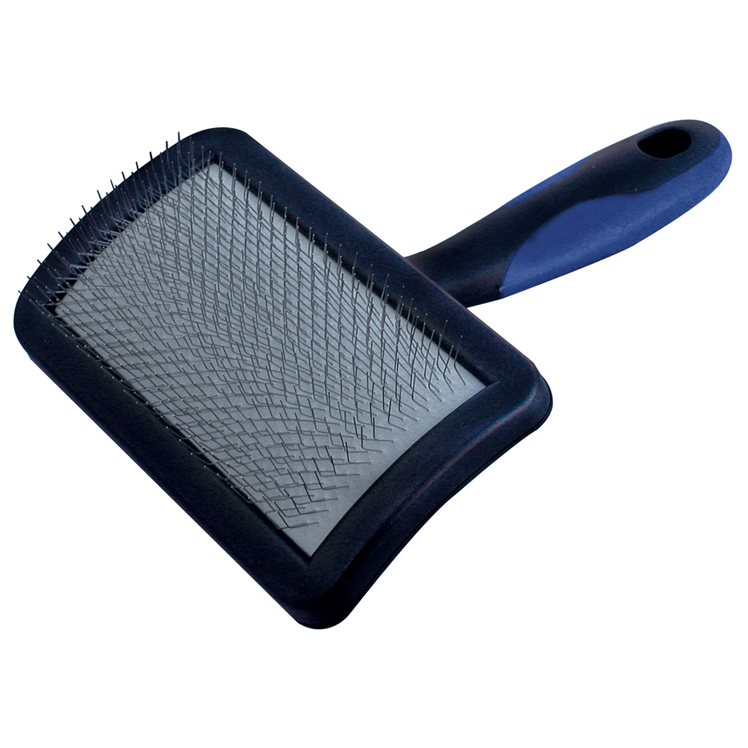 Корпус сликера сделан полностью из пластмассы, мягкие шпильки прочно укреплены в мягкую резиновую подушку. Сликер имеет удобную ручку с нескользящим покрытием. Идеален для животных средних пород.