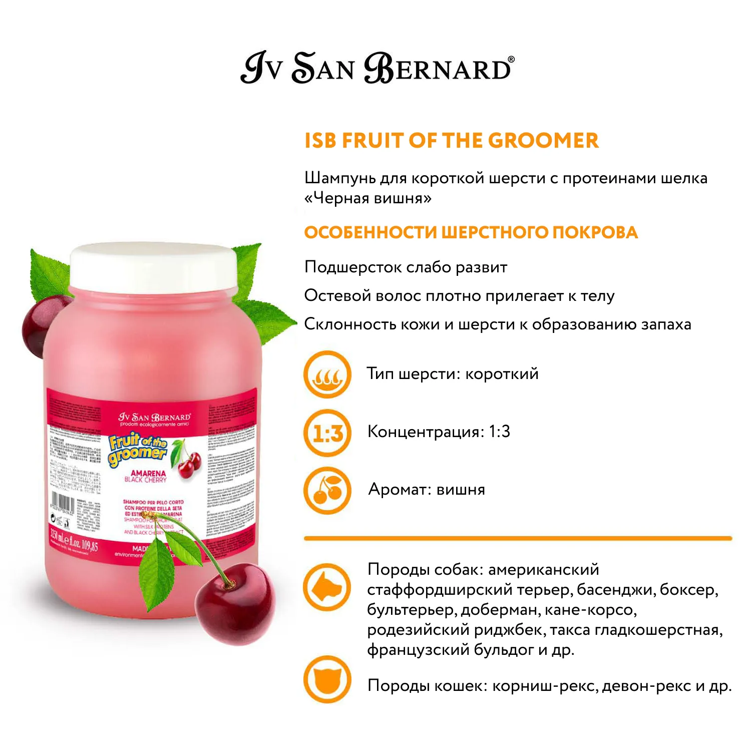 Шампунь Iv San Bernard Fruit of the Groomer Black Cherry для короткой шерсти с протеинами шелка 3,25 л
