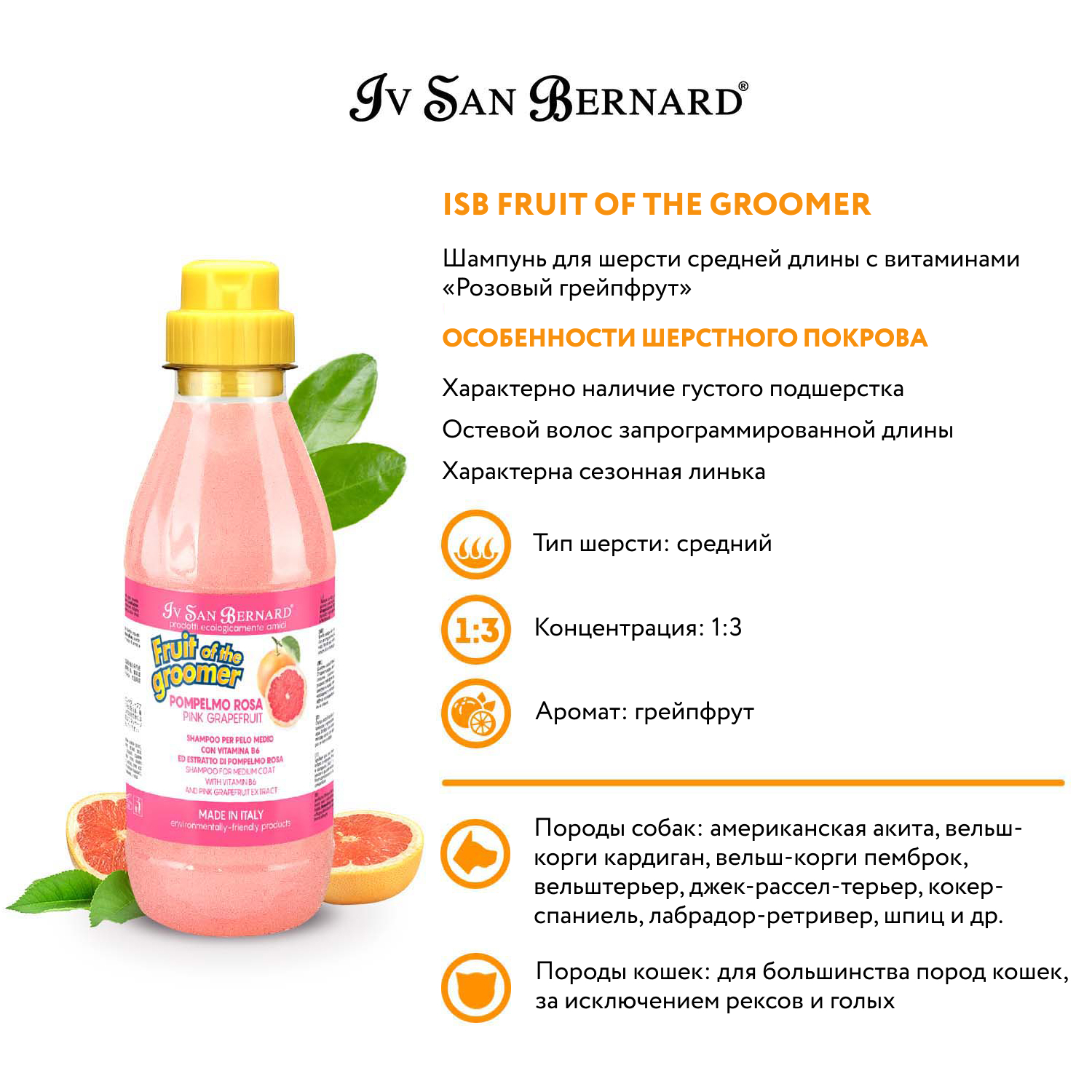 Шампунь Iv San Bernard Fruit of the Groomer Pink Grapefruit для шерсти средней длины с витаминами 500 мл
