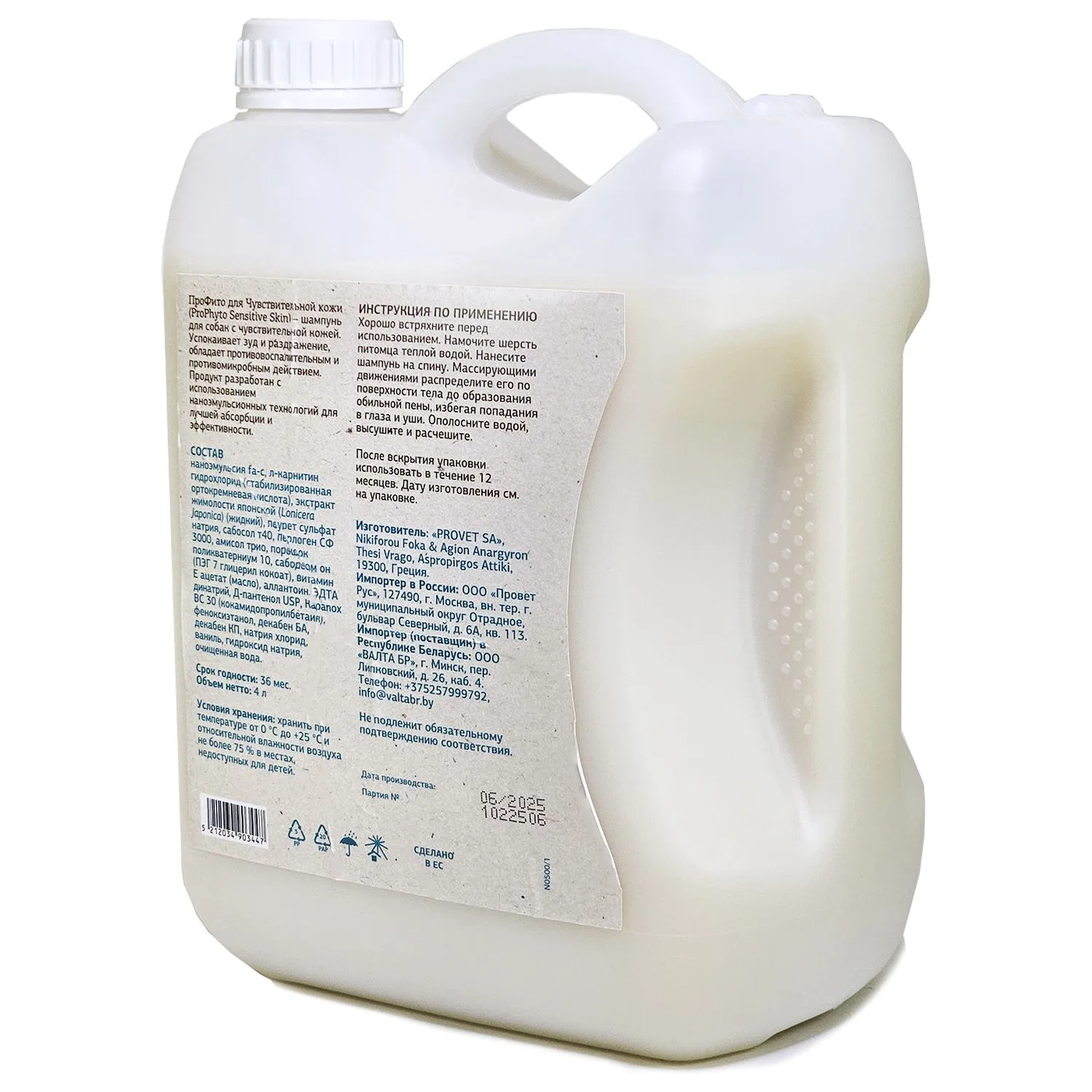 Жидкий шампунь ProPhyto SENSITIVE SKIN SHAMPOO для собак с растительными экстрактами против зуда и раздражения, 4 л